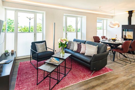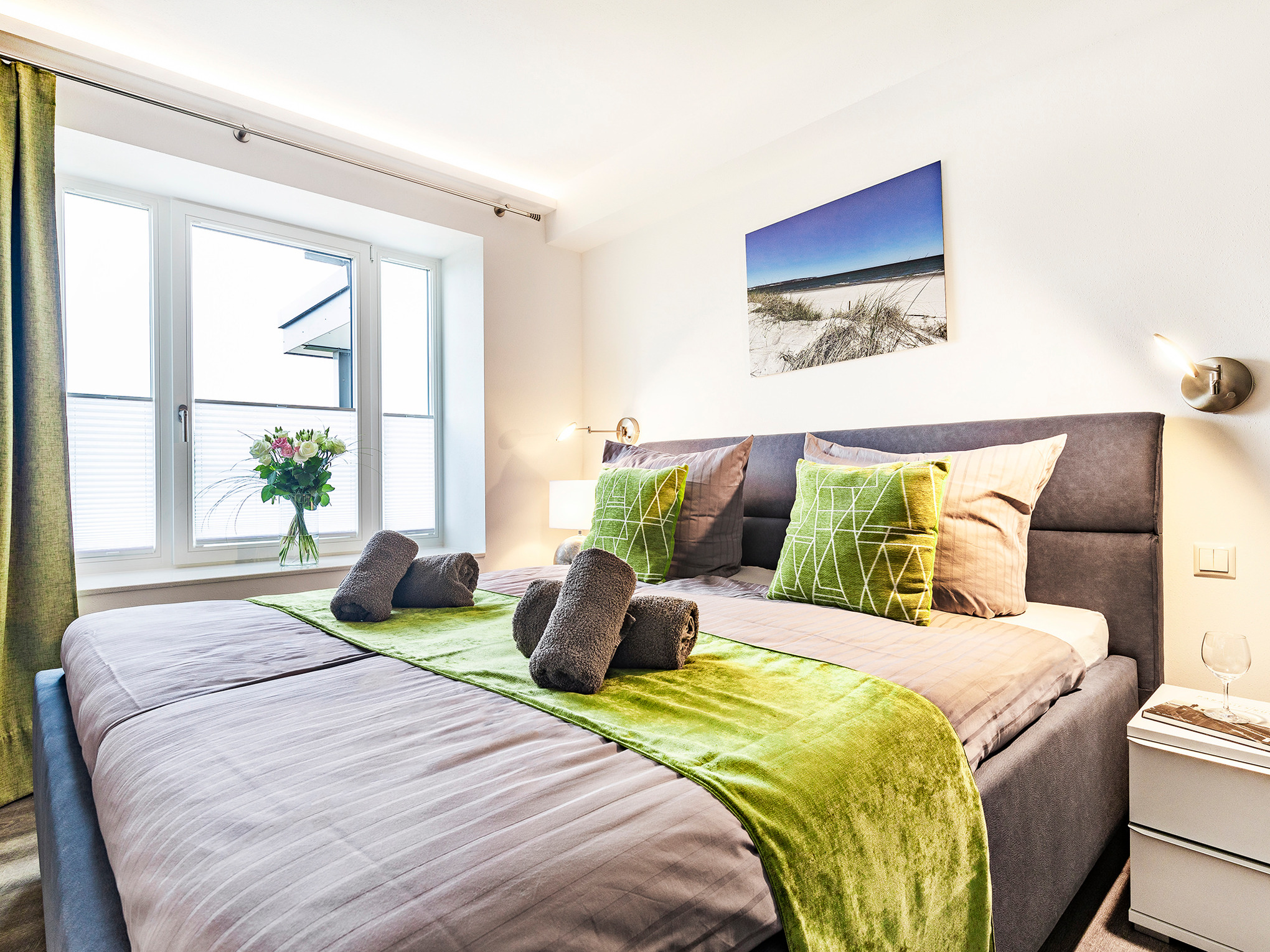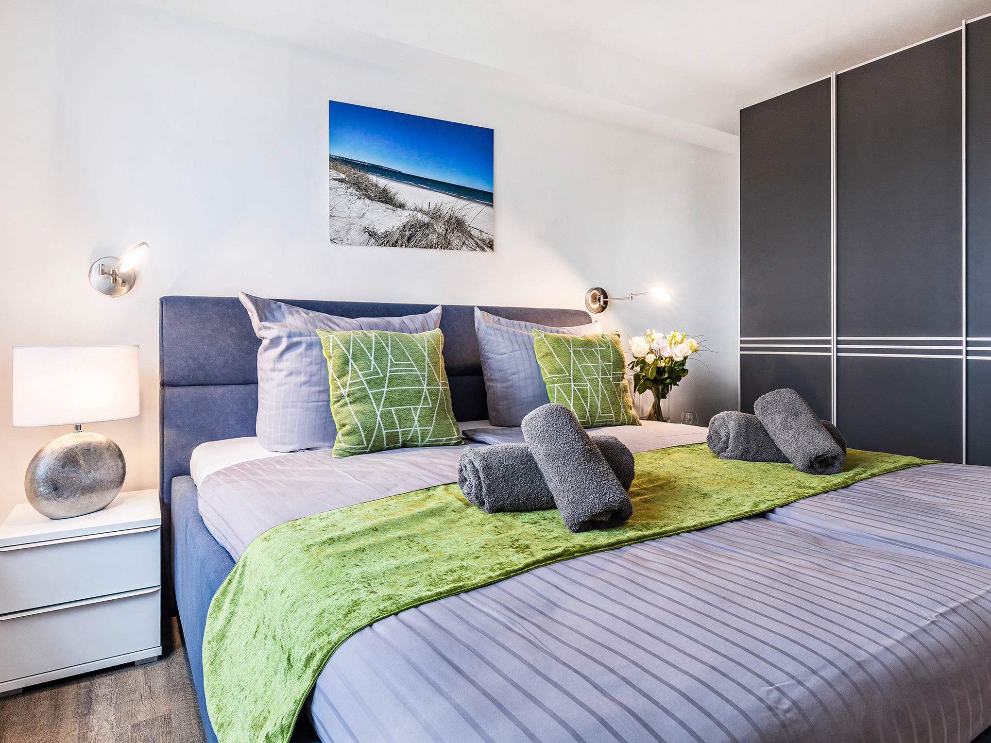 In der gemütlichen Wohnung, mit W-LAN und Fußbodenheizung, stehen Ihnen für Ihren Schlafkomfort zwei Schlafzimmer mit jeweils einem Doppelbett für 2 Personen zur Verfügung . Der zentrale Wohn-Essbereich bietet ausreichend Platz für vier Personen am großen Esstisch sowie auf der bequemen Couch. Der meerseitige Balkon verfügt über einen Tisch und Stühle, die ebenfalls zum Verweilen oder gemeinsamen Essen einladen, das Sie in der vollausgestatteten Küche selbst zubereiten können.