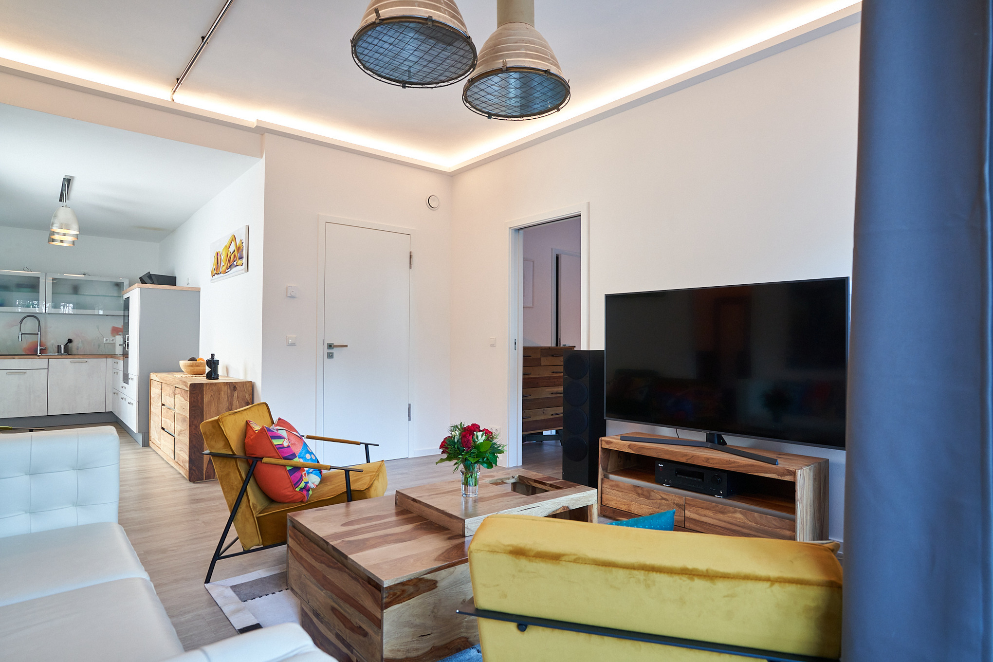 - Wohn- /Essbereich: Sofa, Sitzbereich, Essbereich, TV