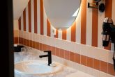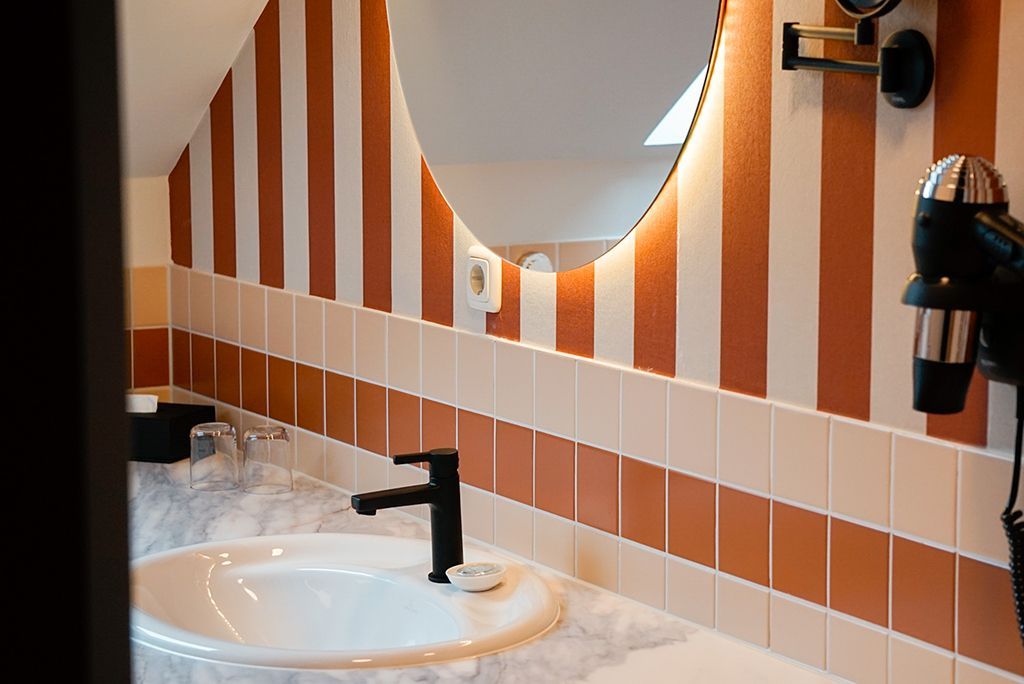 Unsere Badezimmer verfügen über Waschtisch, WC und Dusche.
