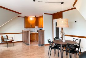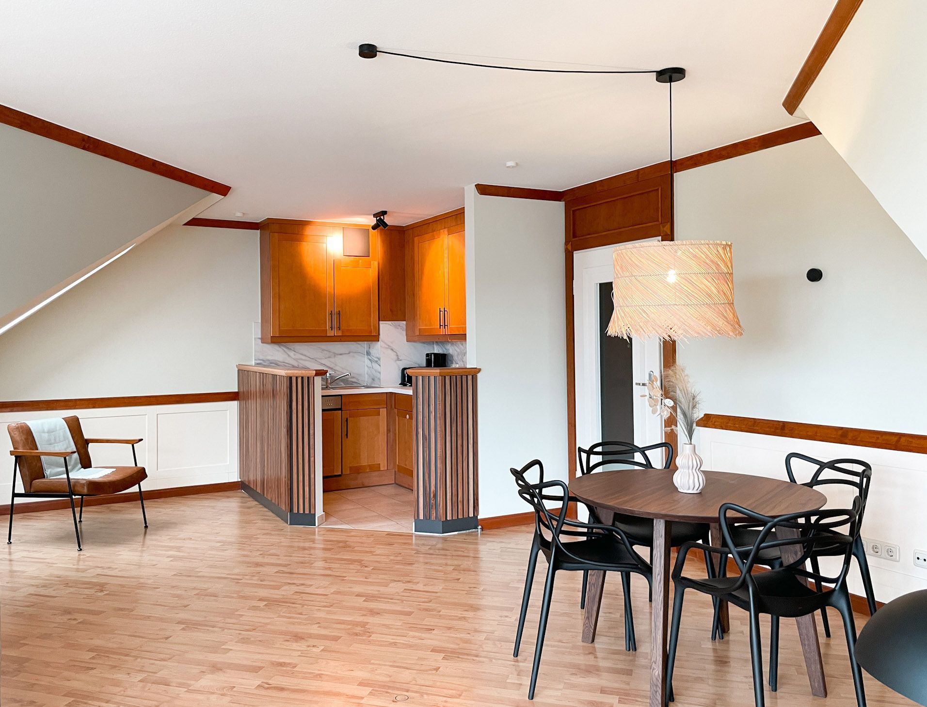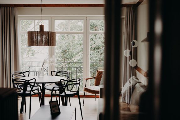 Alle Apartments des Typs Suite (ca. 56-65 m²) liegen in der 3. Etage im Neubau der Villa Usedom und haben eine wunderschöne Aussicht zum Teil mit Meerblick. Das Einrichtungskonzept ist harmonisch abgestimmt und hat einen individuellen Innenausbau mit Echtholz. Die Inneneinrichtung zeichnet sich durch eine dezente Farbgebung aus, die in jeder Jahreszeit ein Höchstmaß an Wohlgefühl vermittelt. Das exklusive 3-Raum-Domizil eignet sich für maximal 4 Personen, wenn die Schlafcouch im Wohnzimmer mit genutzt wird. Ein Babybett kann jederzeit untergebracht werden. Viel Platz zum Entspannen bietet der offene Wohn-Essbereich mit Couch und Sessel.