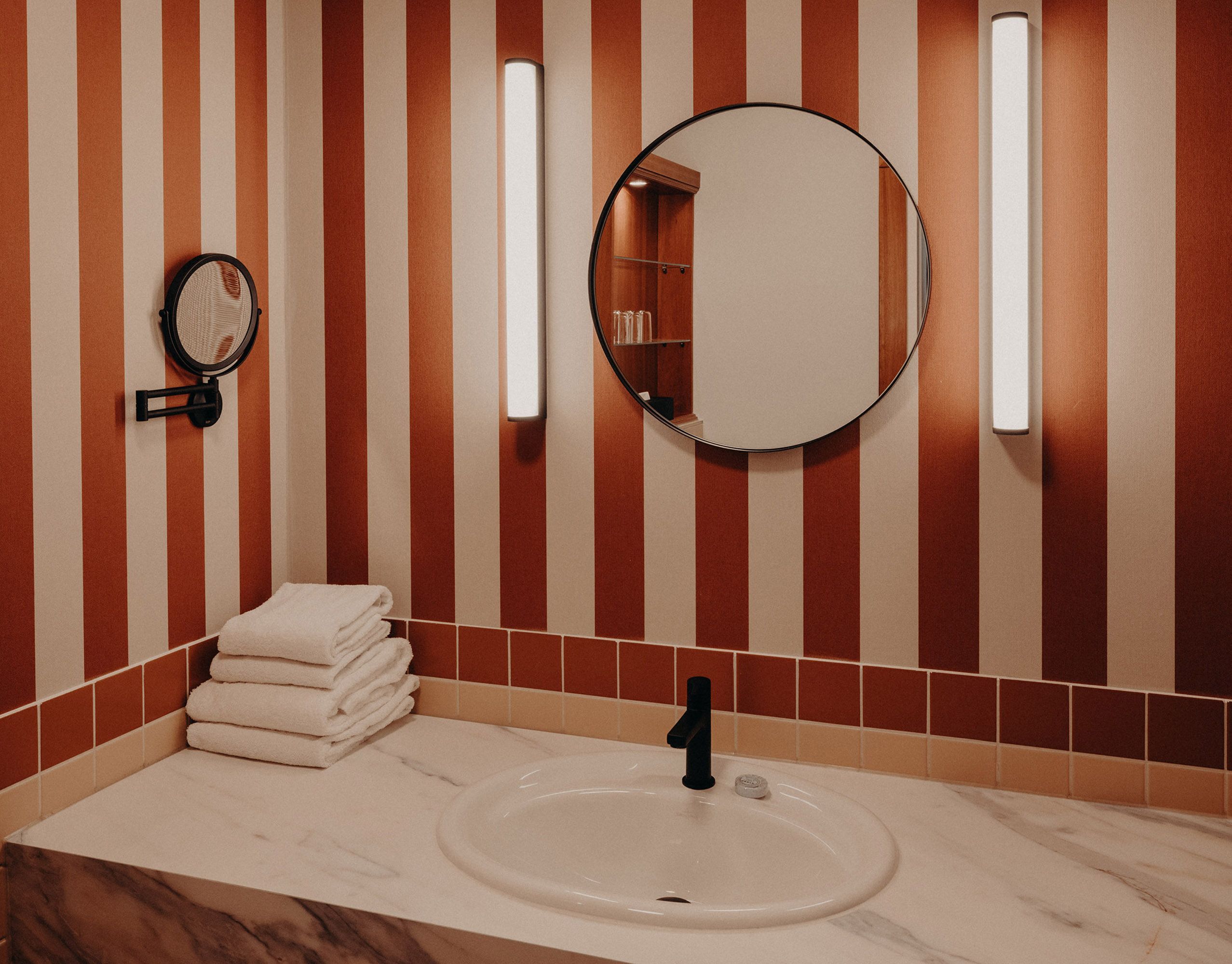 Unsere Badezimmer verfügen über Waschtisch, WC und Dusche.