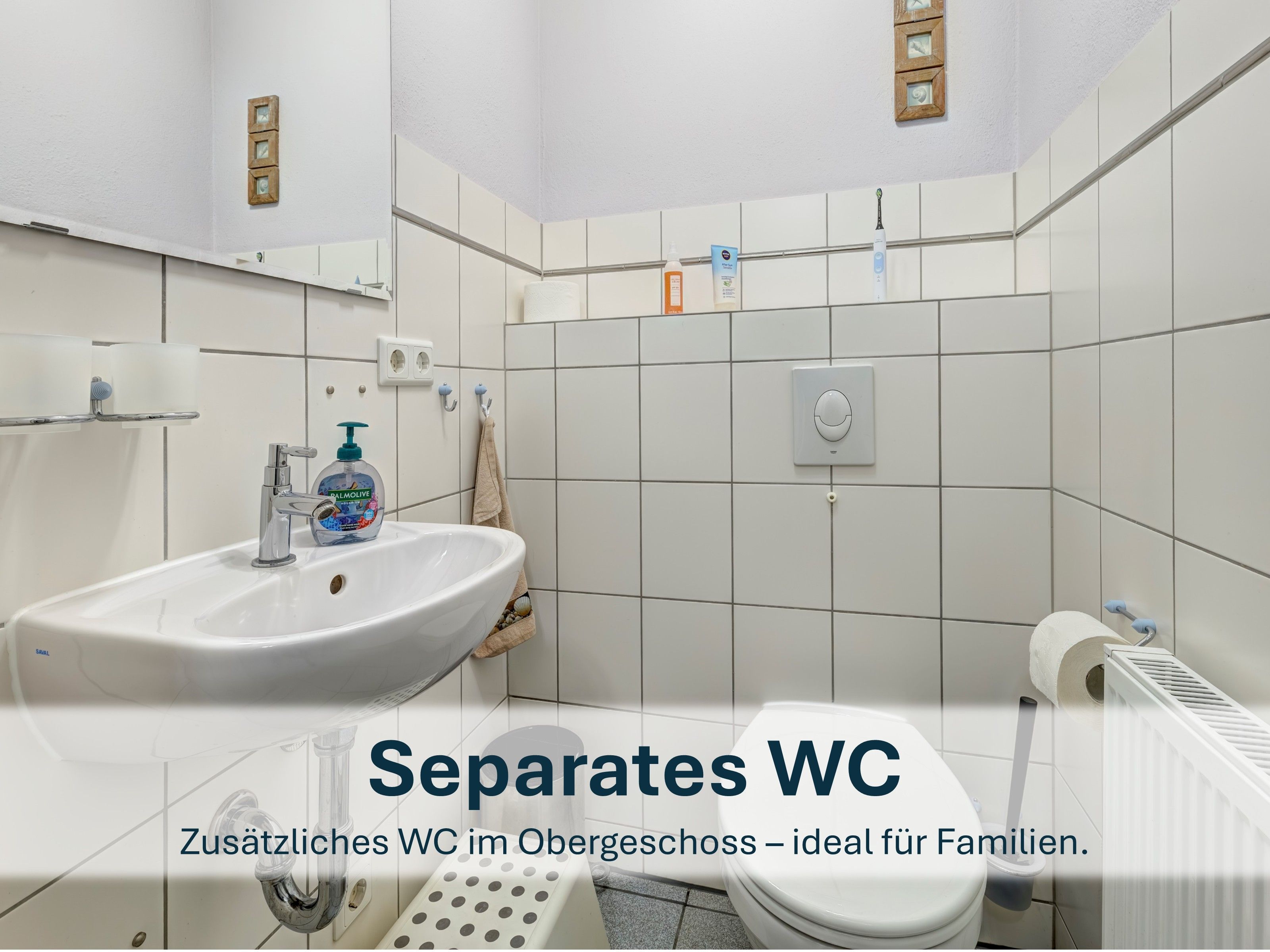 Ein separates WC mit Waschbecken liegt direkt zwischen den Schlafzimmern.