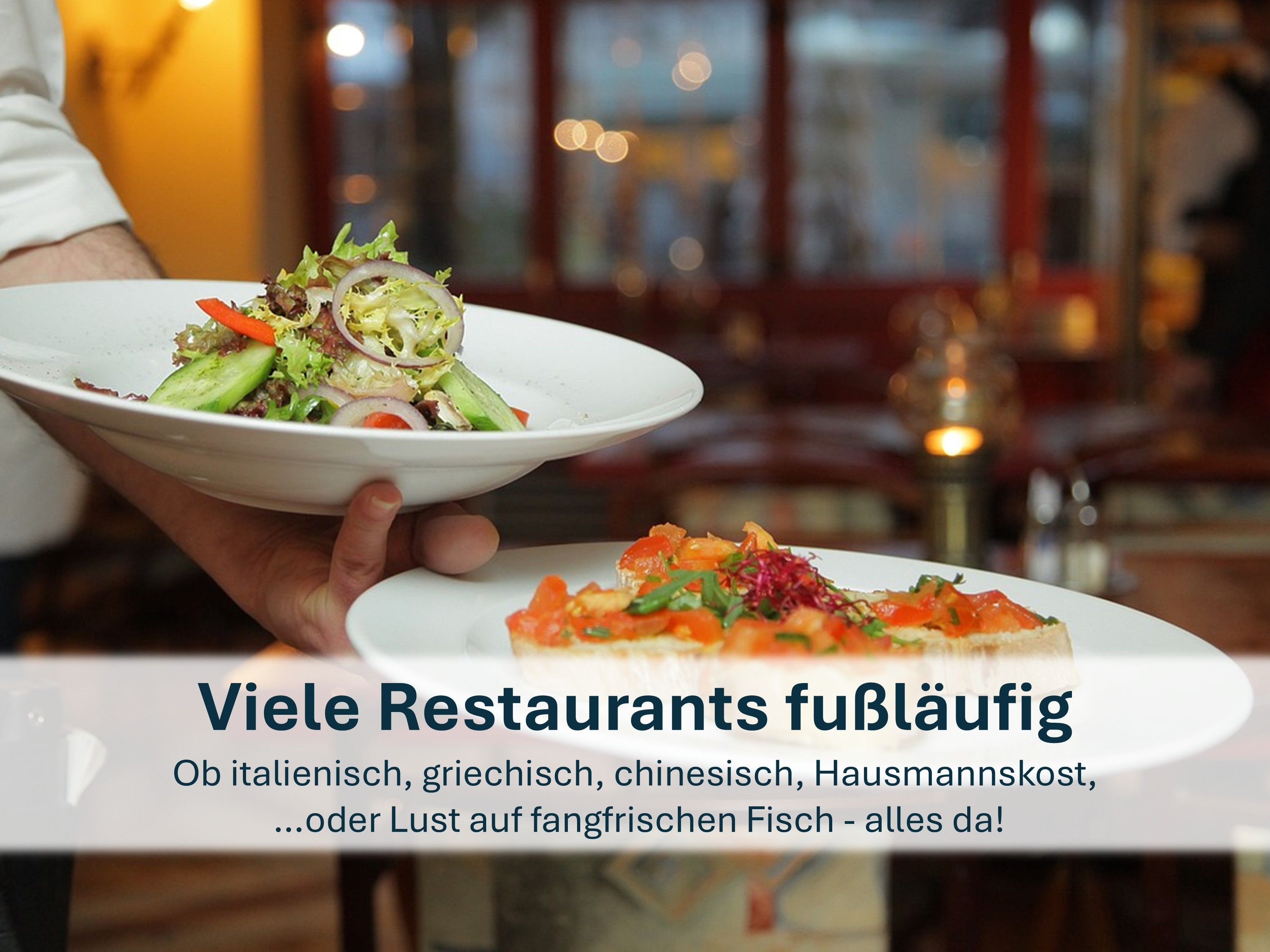 Das Zentrum von Zinnowitz mit Boutiquen, Cafés und Restaurants ist fußläufig erreichbar ebenso wie die Bernsteintherme und die Konzertmuschel.