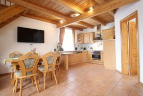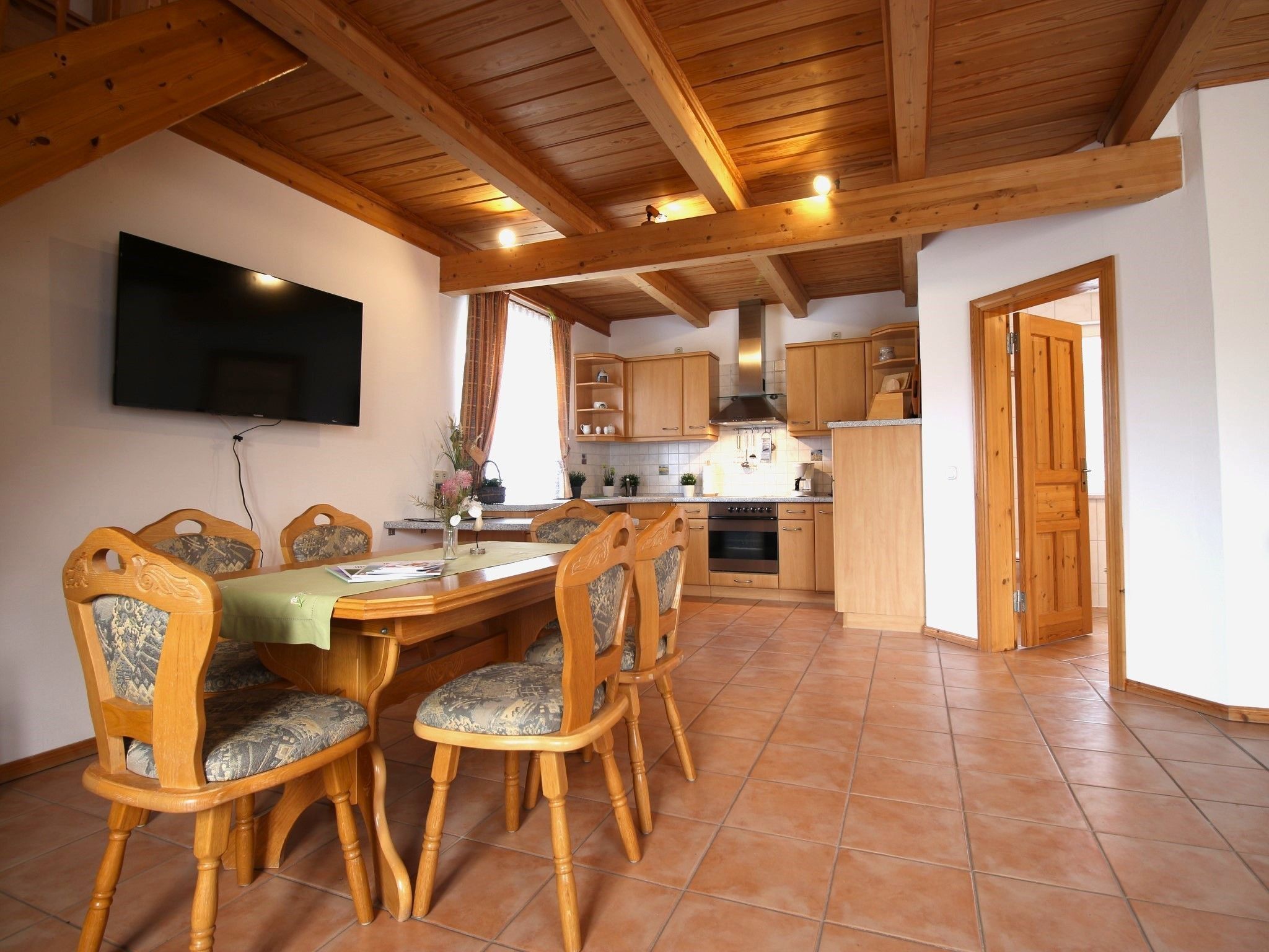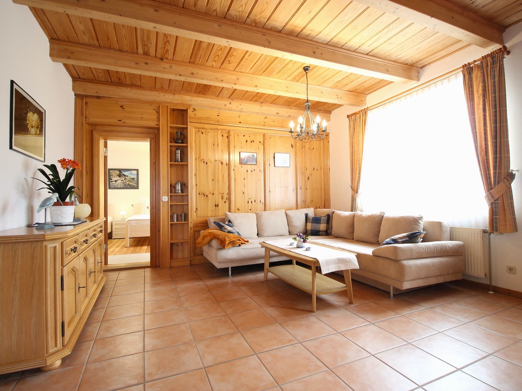 Die ca. 125 m² große Ferienwohnung erstreckt sich über zwei Etagen befindet sich im Anbau des Hauses der Gastgeberfamilie.