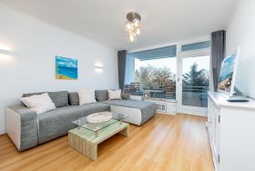 Der nach Nordosten ausgerichtete Balkon mit Blick in Richtung Ostsee lädt zum Verweilen und Entspannen ein.
