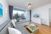 Das modern ausgestattete 2-Zimmer Appartement im 2. OG ist für bis zu 2 Personen ausgestattet. Der Wohnraum verfügt über eine bequeme Couch mit Kabel-TV und einem großzügigen Essbereich.