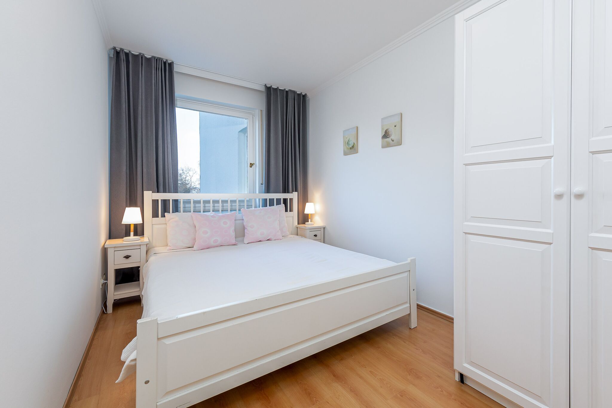 Im hellen Schlafzimmer finden in dem komfortablen und bequemen Doppelbett(2 x 80 cm x 200 cm) bis zu 2 Personen erholsamen Schlaf.