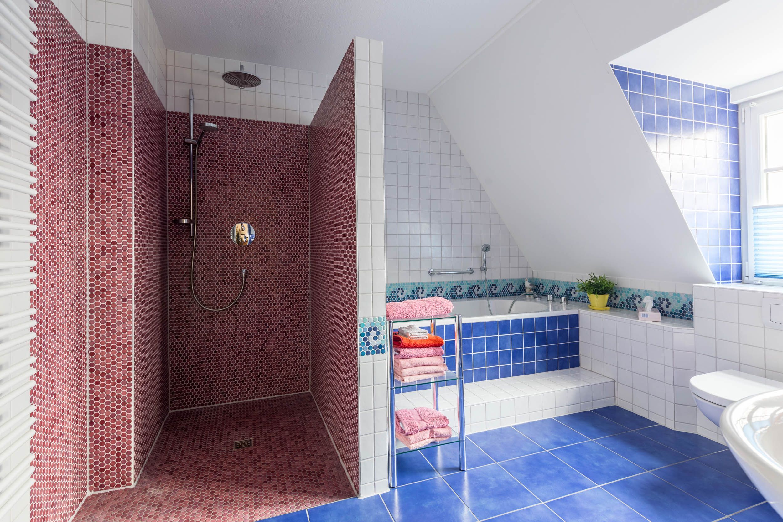 Weiterhin erleichtern 2 Bäder den Familienurlaub - Ein Badezimmer mit WC und Dusche und ein Badezimmer ist mit Badewanne und WC ausgestattet.