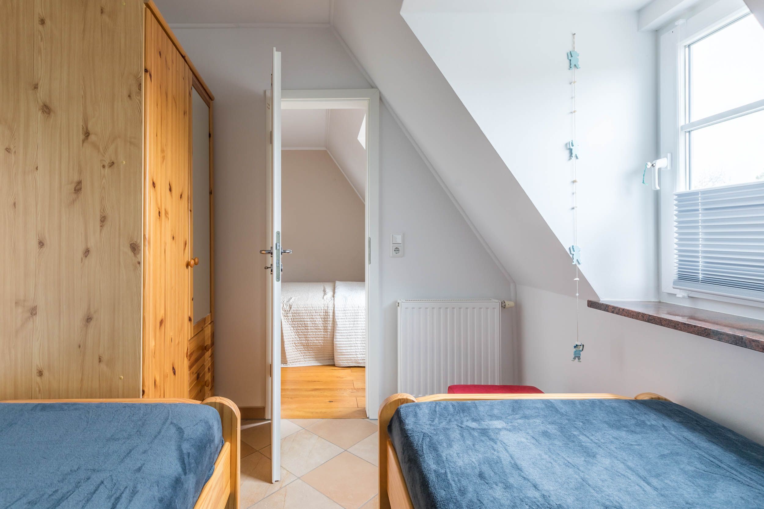 Die Wohnung ist mit 3 separaten Schlafzimmern ausgestattet: Im größten Schlafzimmer befinden sich neben einem höheren Doppelbett auch ein weiterer Flatscreen-TV zur Multimediaunterhaltung. Die Gästezimmer sind einmal mit 2 Einzelbetten und einmal mit einem Doppelbett eingerichtet. Für genügend Stauraum Ihrer Urlaubsgarderobe ist gesorgt.