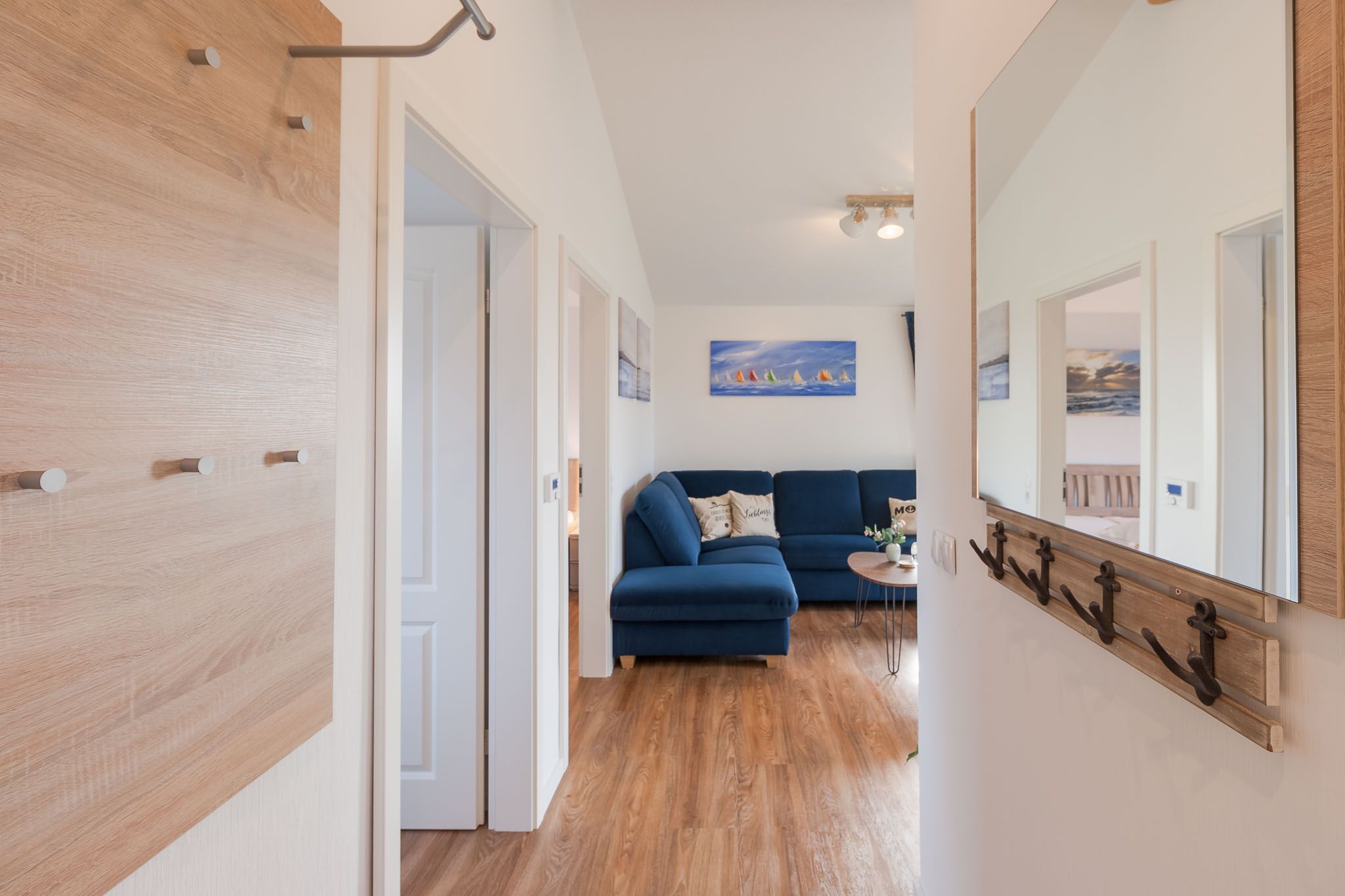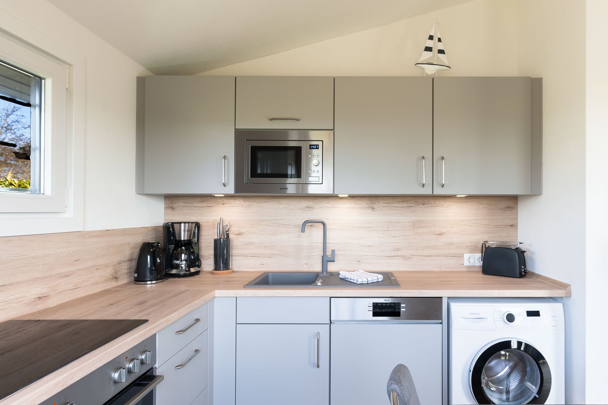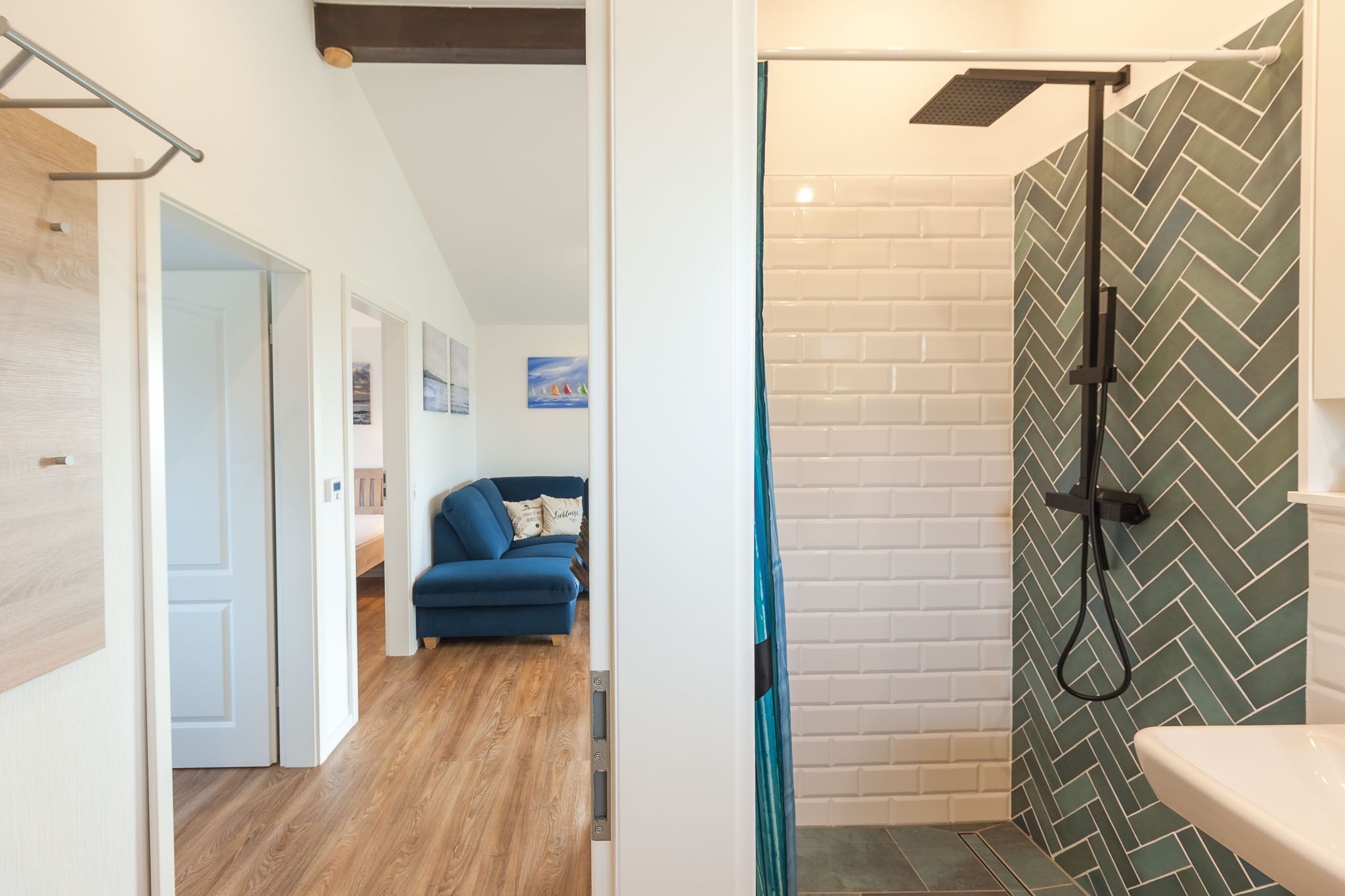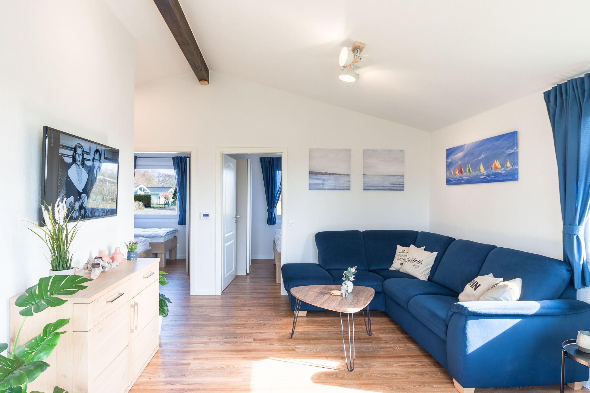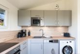 Wohnzimmer mit offener Küche, 2 Schlafräume 1x 160er Bett 2x 80er Betten, 1 Dusch/WC mit bodengleicher Dusche.
