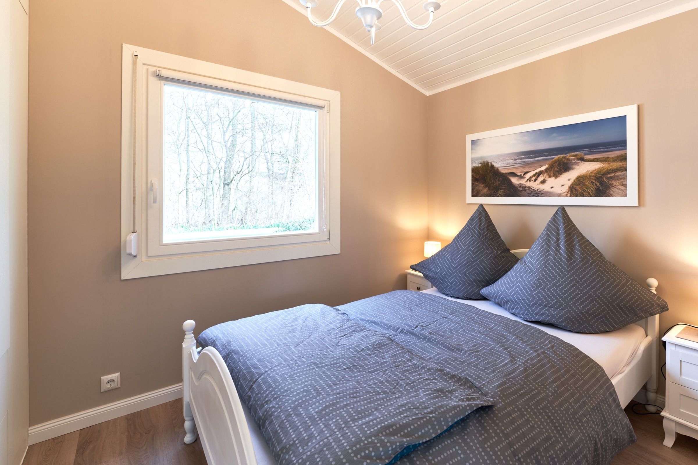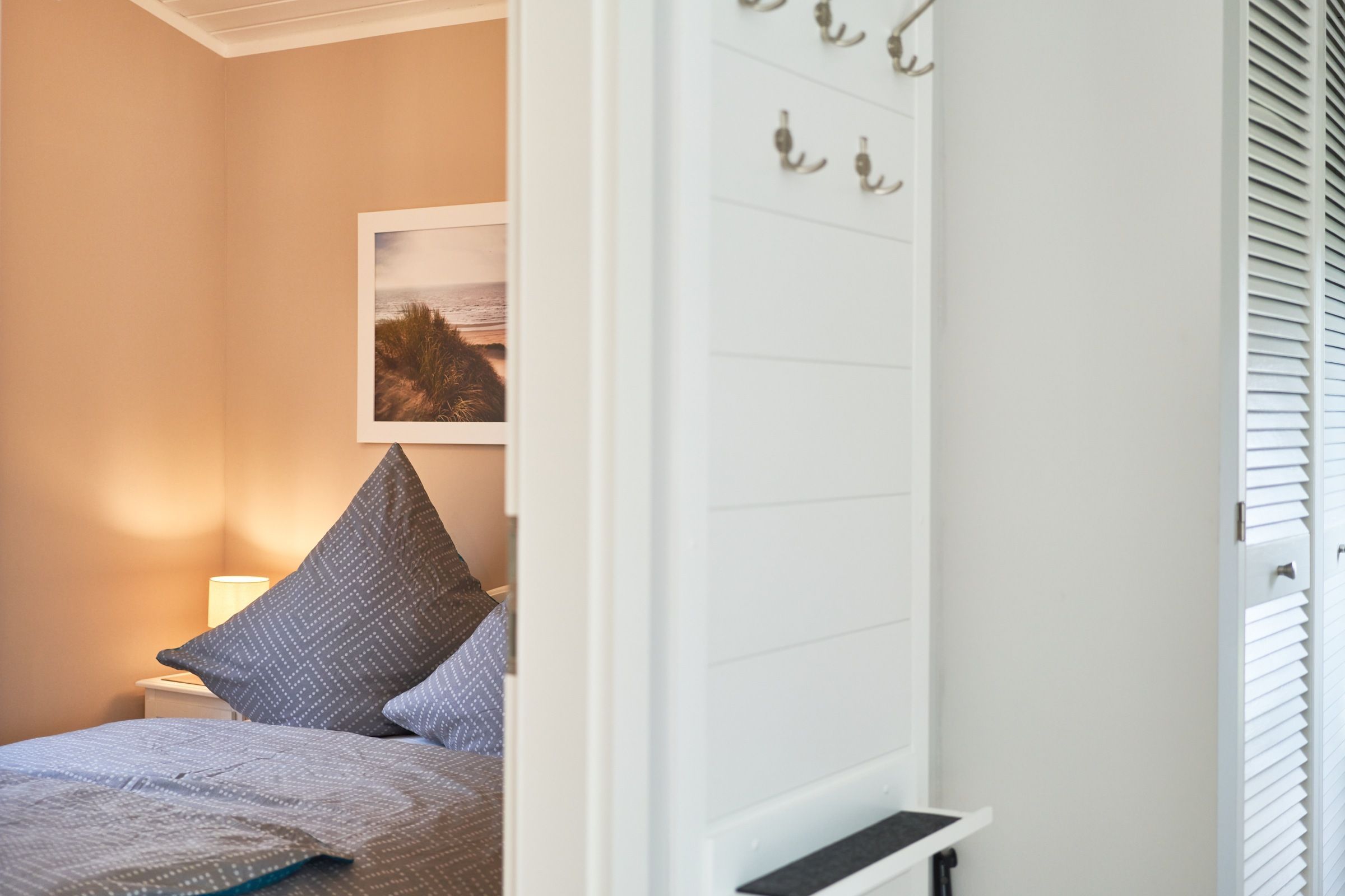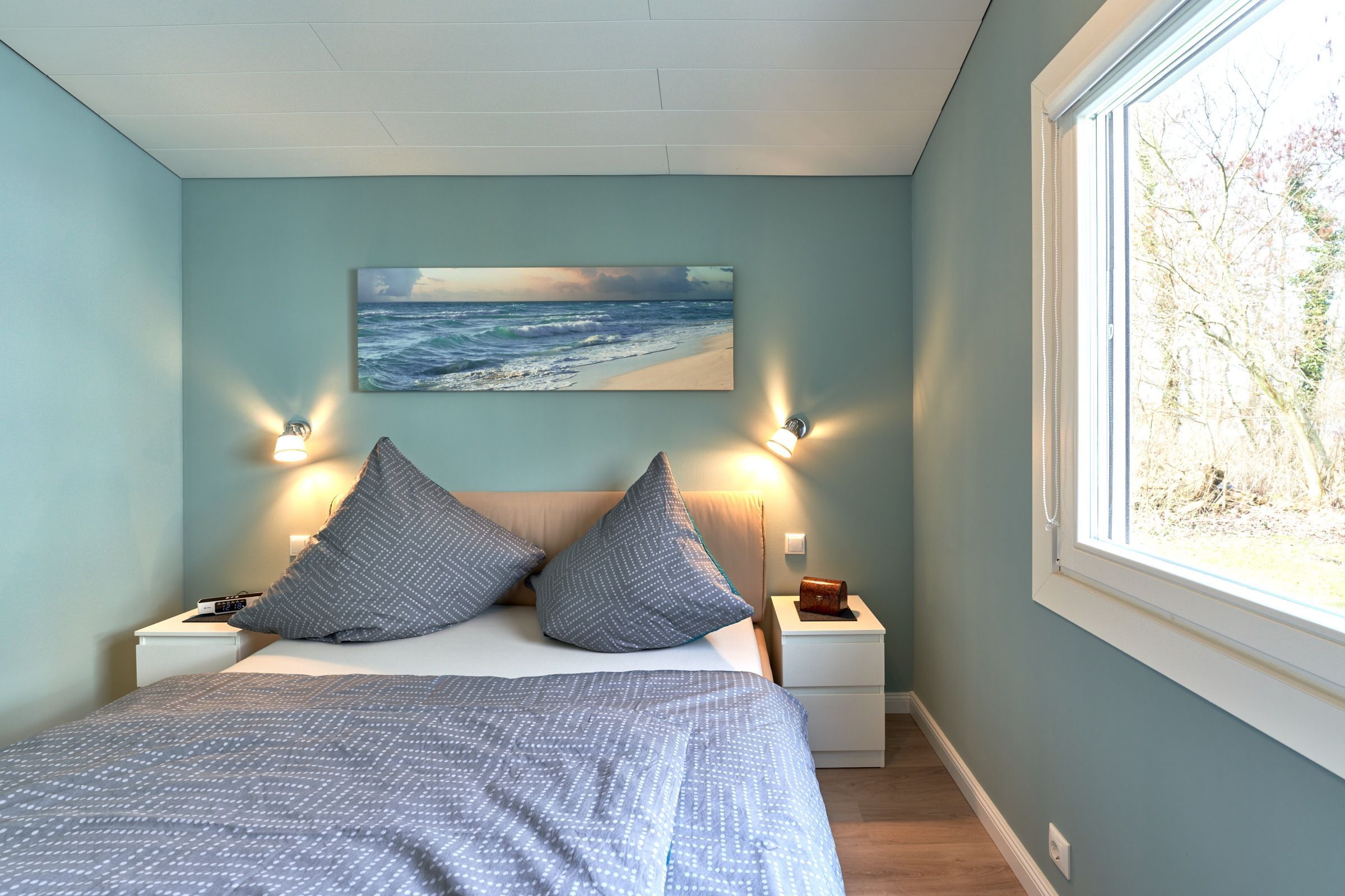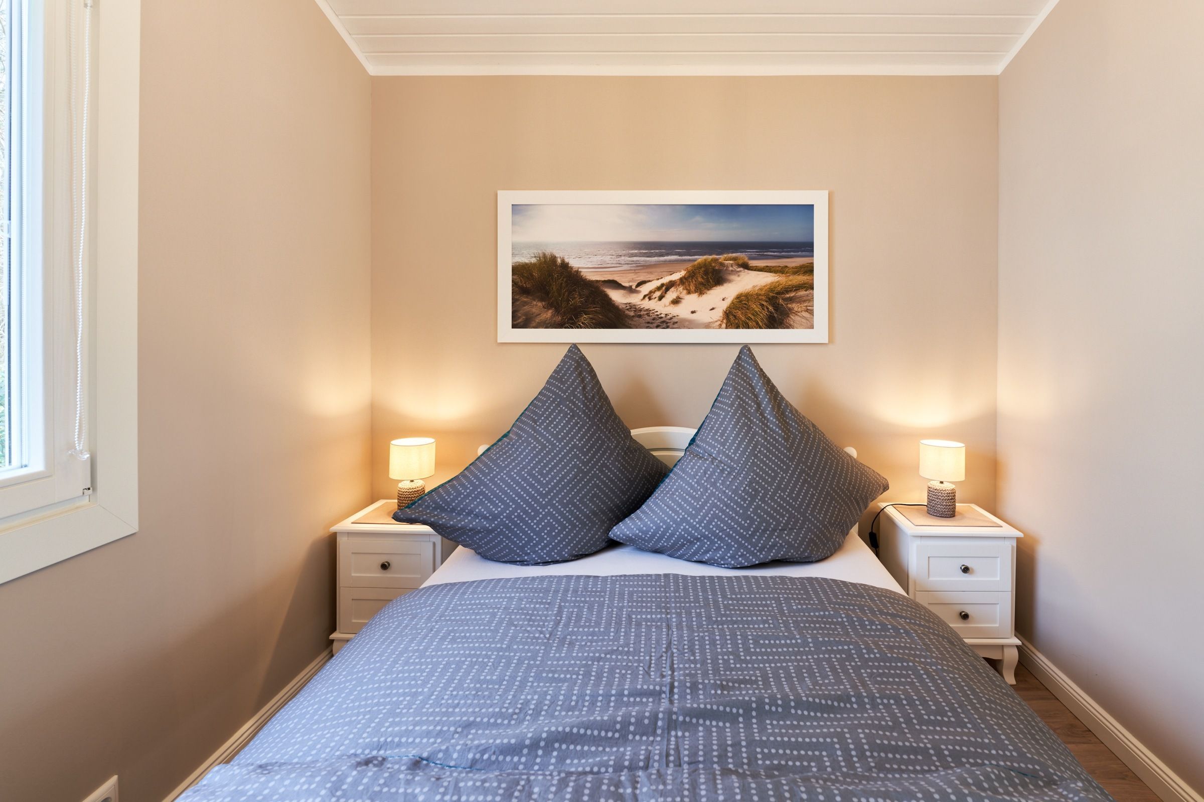 Im Ferienhaus erwarten Sie zwei Schlafzimmer mit komfortablen Betten (1,60m x 2,00m & 1,40m x 2,00m), in denen erholsamer Schlaf garantiert ist. Beide Räume sind mit Nachtschränkchen und Nachtleuchten ausgestattet, während Einbauschränke inklusive Bügeln reichlich Stauraum für Ihre Kleidung bieten.