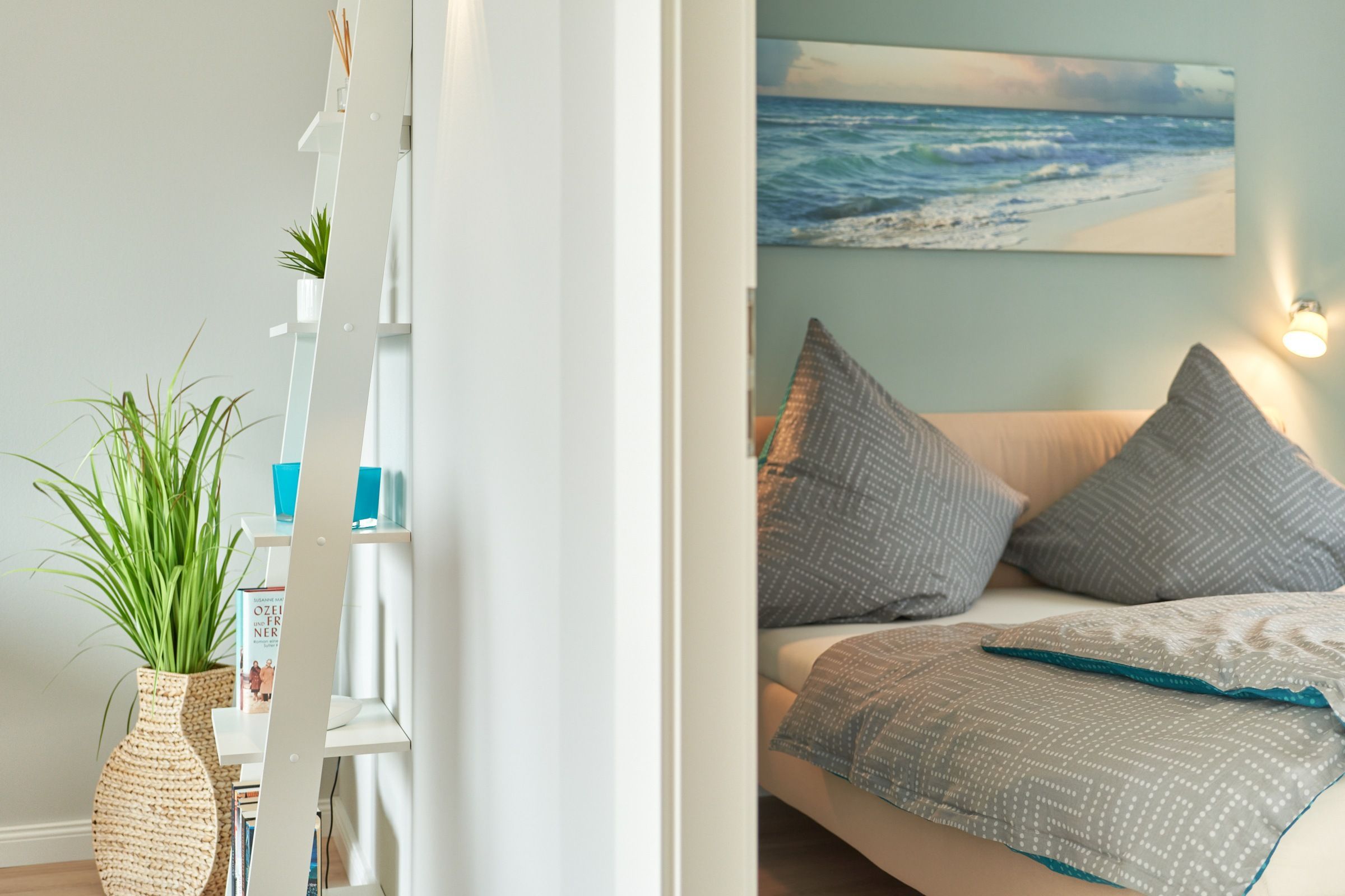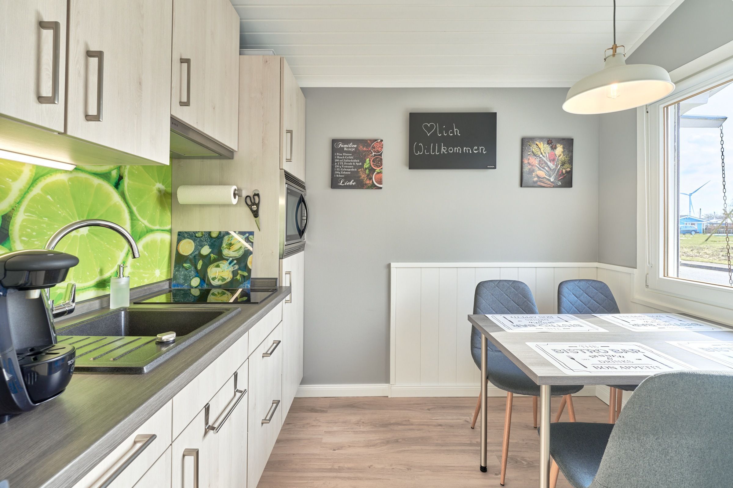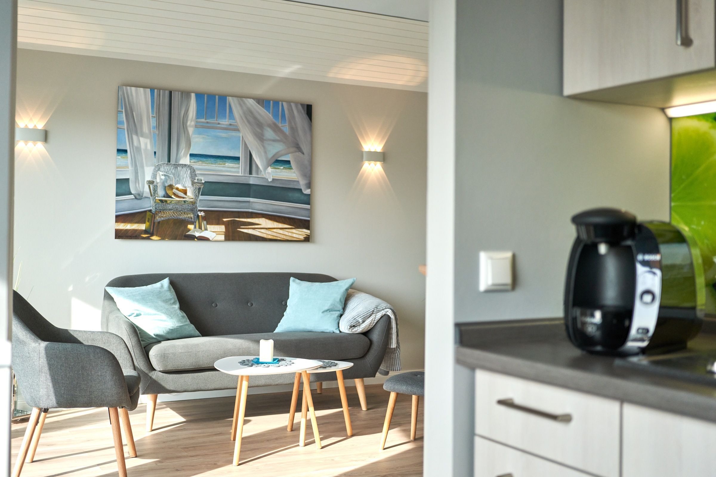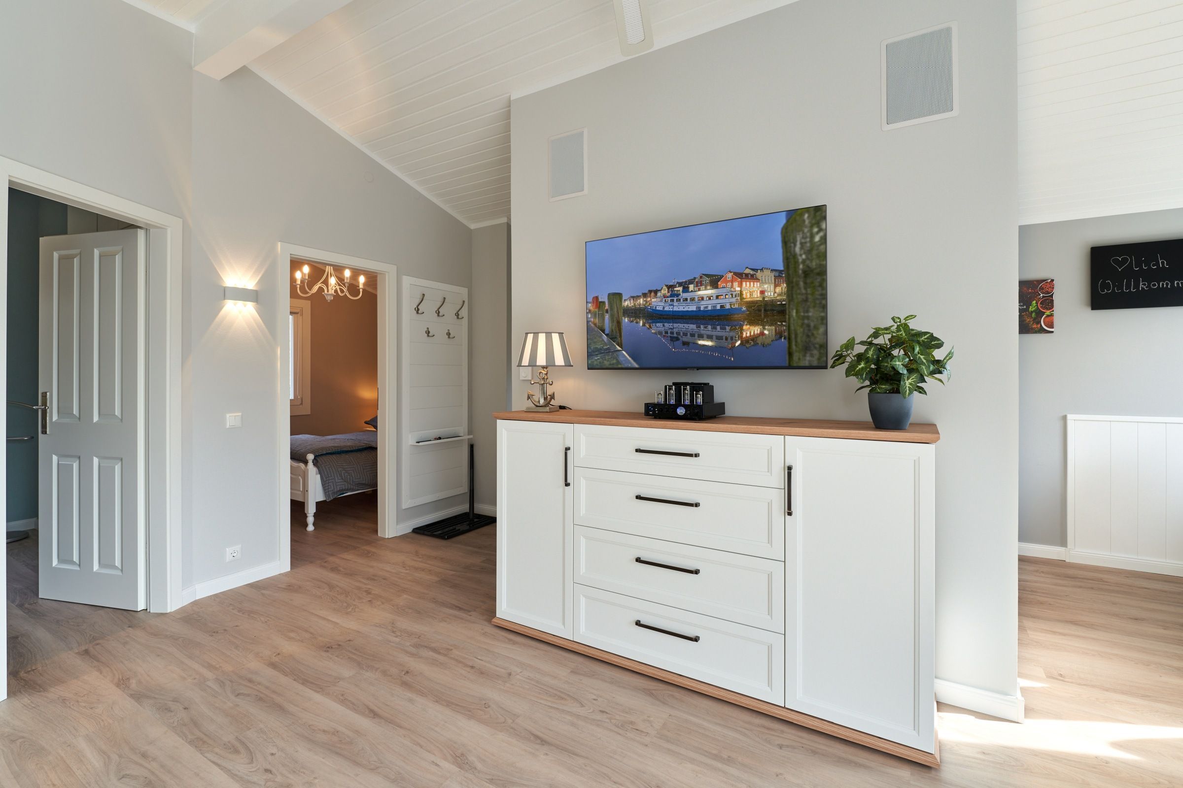 Das 2022 komplett renovierte Ferienhaus Mein Ankerpunkt ist der ideale Ort zum Entspannen und neue Energie tanken. In dem stilvoll eingerichteten und lichtdurchfluteten Haus finden auf 50 Quadratmetern bis zu vier Personen Platz. Das großzügige Wohnzimmer begeistert mit einer einladenden Sitzgruppe und großen Fenstern, die den Blick auf die sonnenverwöhnte Terrasse freigeben. Der 50-Zoll-Smart-TV bietet Zugang zu Netflix und Amazon Prime, um auch bei schlechtem Wetter unterhaltsame Stunden zu verbringen. Kostenloses WLAN steht ebenfalls zur Verfügung, und an heißen Tagen sorgt ein Deckenventilator für angenehme Kühle.
