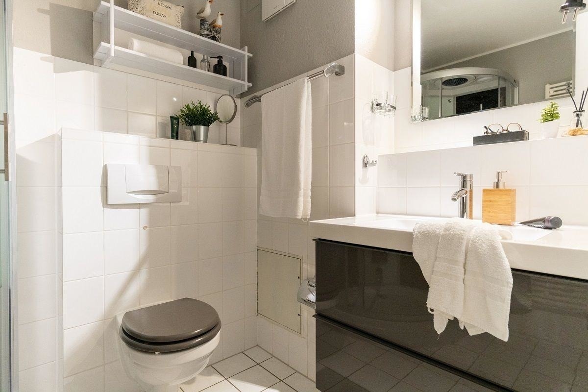 Die gemütliche 40m²-Wohnung befindet sich in der ersten Etage (Aufzug vorhanden) und verfügt über ein separates Schlafzimmer mit Doppelbett (ca. 160 x 200 cm), einen hellen Wohn- und Essbereich, sowie einen kleinen Nord-Balkon.
