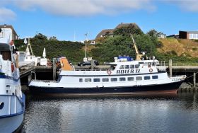 Das Haus liegt auf einer Düne am Ende einer Sackgasse direkt über dem Hafen, eine lange Treppe führt hinunter zum Hafen und den Ausflugsschiffen. Vom Essplatz aus hat man einen fantastischen Blick auf das Meer, auf die Nachbarinseln Amrum und Föhr sowie auf die Südspitze mit Leuchtturm. Bei klarer Sicht kann man sogar die Halligen Langeneß und Hooge sehen.