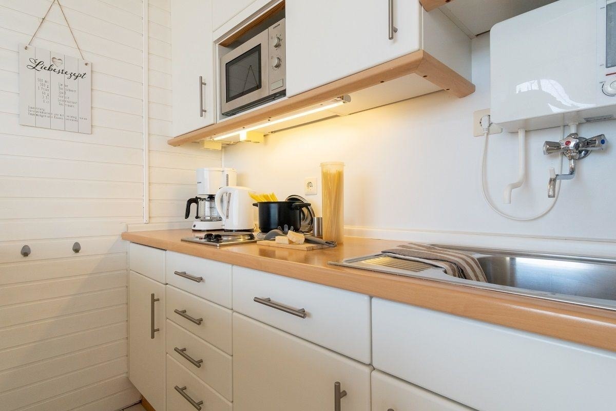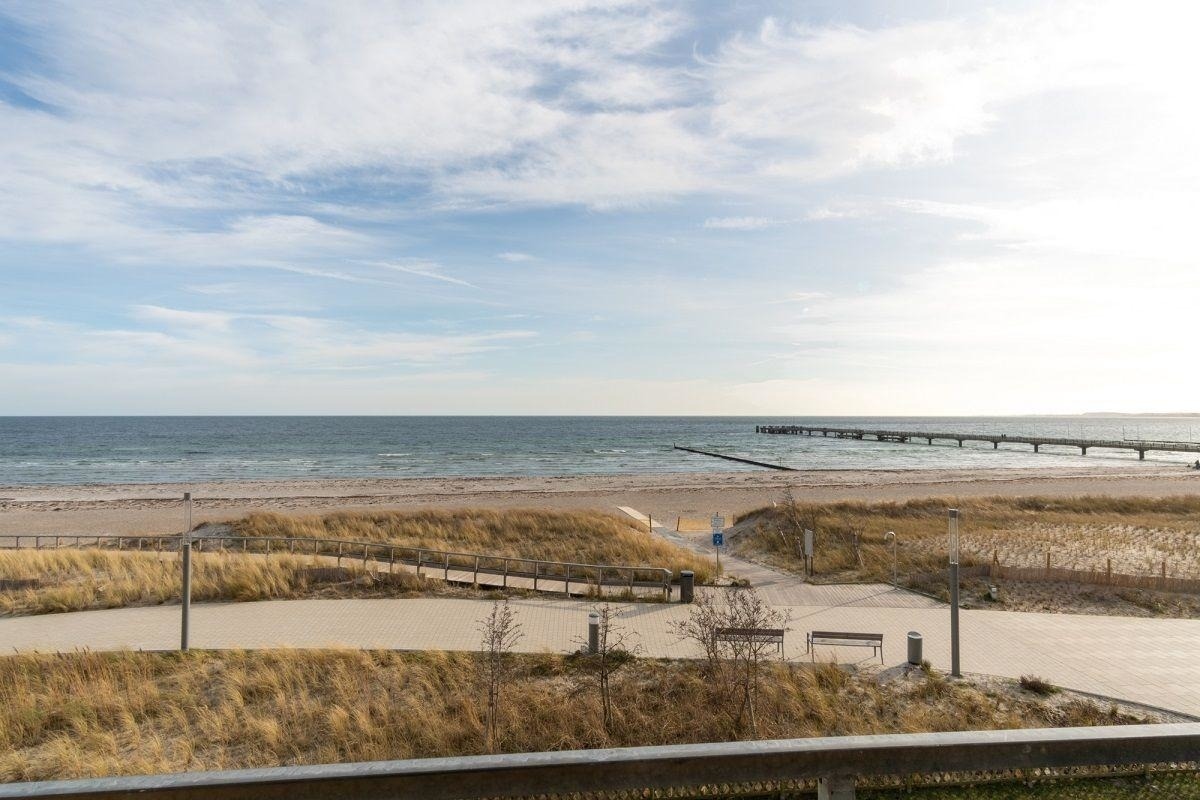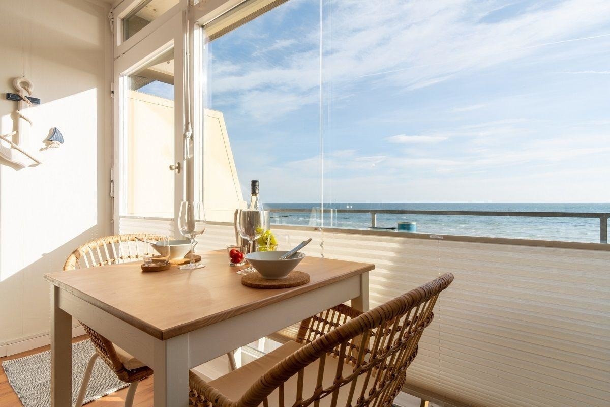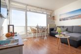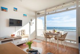 Die gemütliche 36m²- Wohnung befindet sich in der zweiten Etage im Haus C der Anlage Bellevue. Der sonnige Wohnbereich verfügt über ein gemütliches Sofa und einen Flatscreen-TV. Die angrenzende Essecke bietet schon beim Frühstück einen herrlichen Blick zur Ostsee, so dass man schon morgens das Getümmel der Möwen beobachten kann. Das Schlafzimmer befindet sich im hinteren Bereich der Wohnung und wurde mit einem Doppelbett ausgestattet.