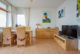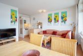Die gemütliche 54m²-Wohnung befindet sich in der vierten Etage verfügt über einen hellen Wohnbereich mit einem gemütlichen Sofa, Flatscreen-TV und einer Essecke für vier Personen.