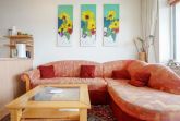Vom Wohnzimmer aus gelangen Sie auf den Westalkon mit tollem Ausblick seitlich zum Meer.
