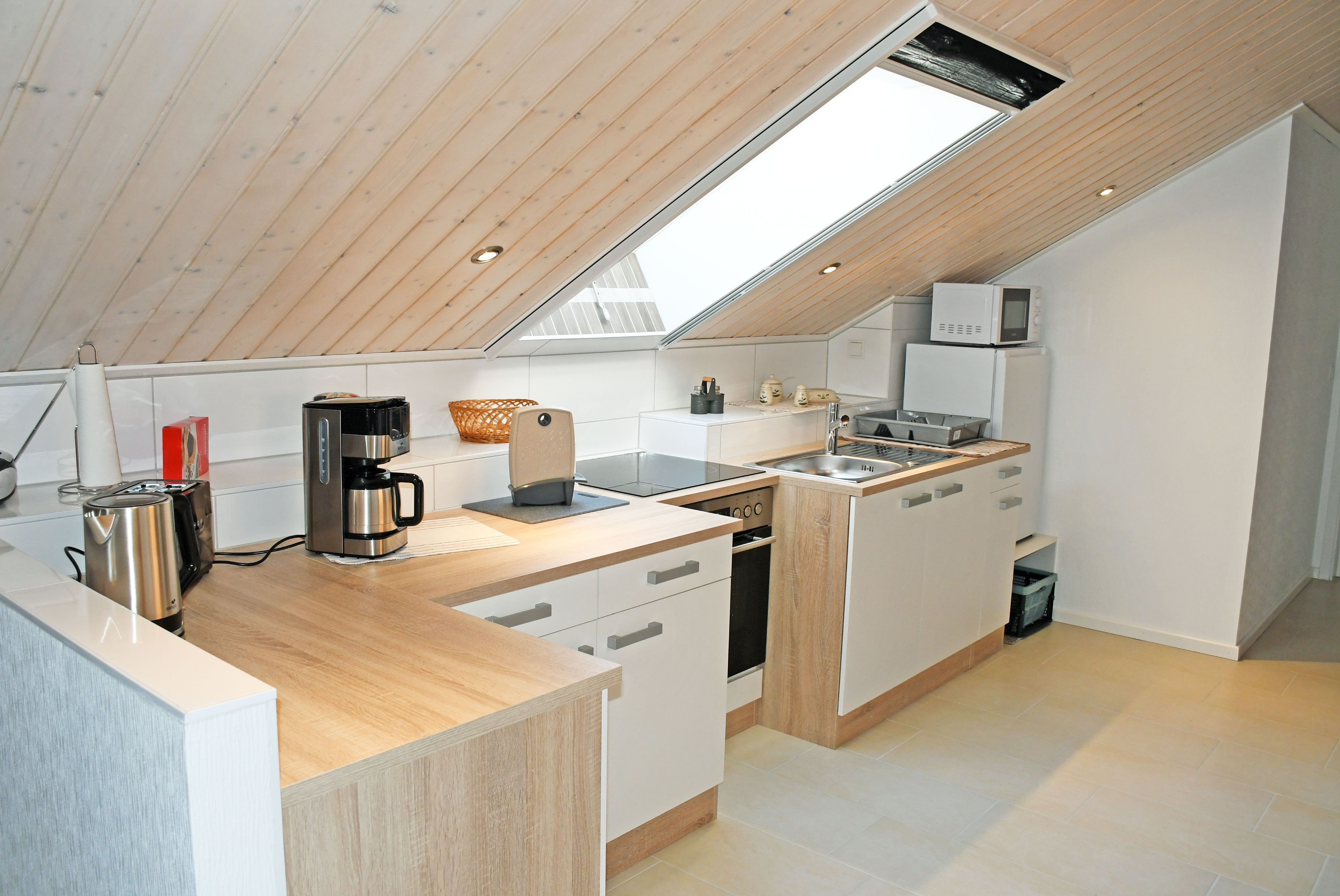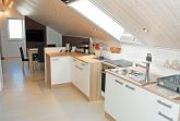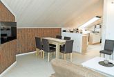 In dem großzügigen Wohnraum befinden sich eine Sitzcouch mit Tisch und Sessel, Leselampe und Flachbild-TV. Hier steht auch ein Esstisch mit Stühlen. Die Küchenzeile im Wohnbereich ist mit einem Herd, Wasserkocher, Kaffeemaschine, Toaster und Kühlschrank mit Gefrierfach komplett ausgestattet. Im ersten Schlafzimmer befindet sich ein bequemes Doppelbett mit Nachttischen und Leselampen sowie einer Schrankkommode. Im zweiten Schlafzimmer stehen zwei Einzelbetten, Tisch und Stühle. Ein kleines Kinderreisebett kann auf Wunsch kostenlos bereitgestellt werden. Im dritten Schlafzimmer steht ein Einzelbett und eine Schrankkommode. In der Wohnung gibt es auch kostenloses WLAN.