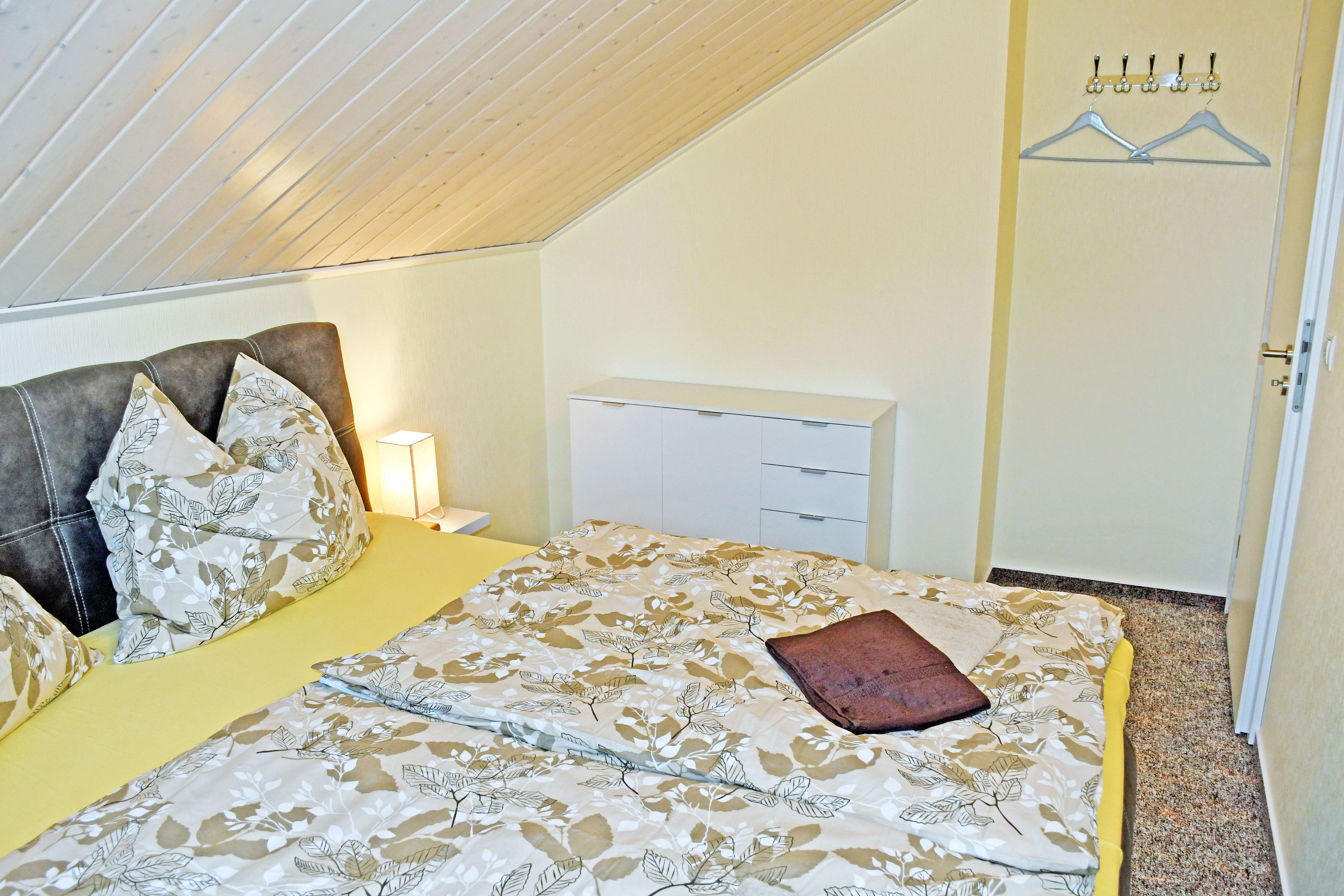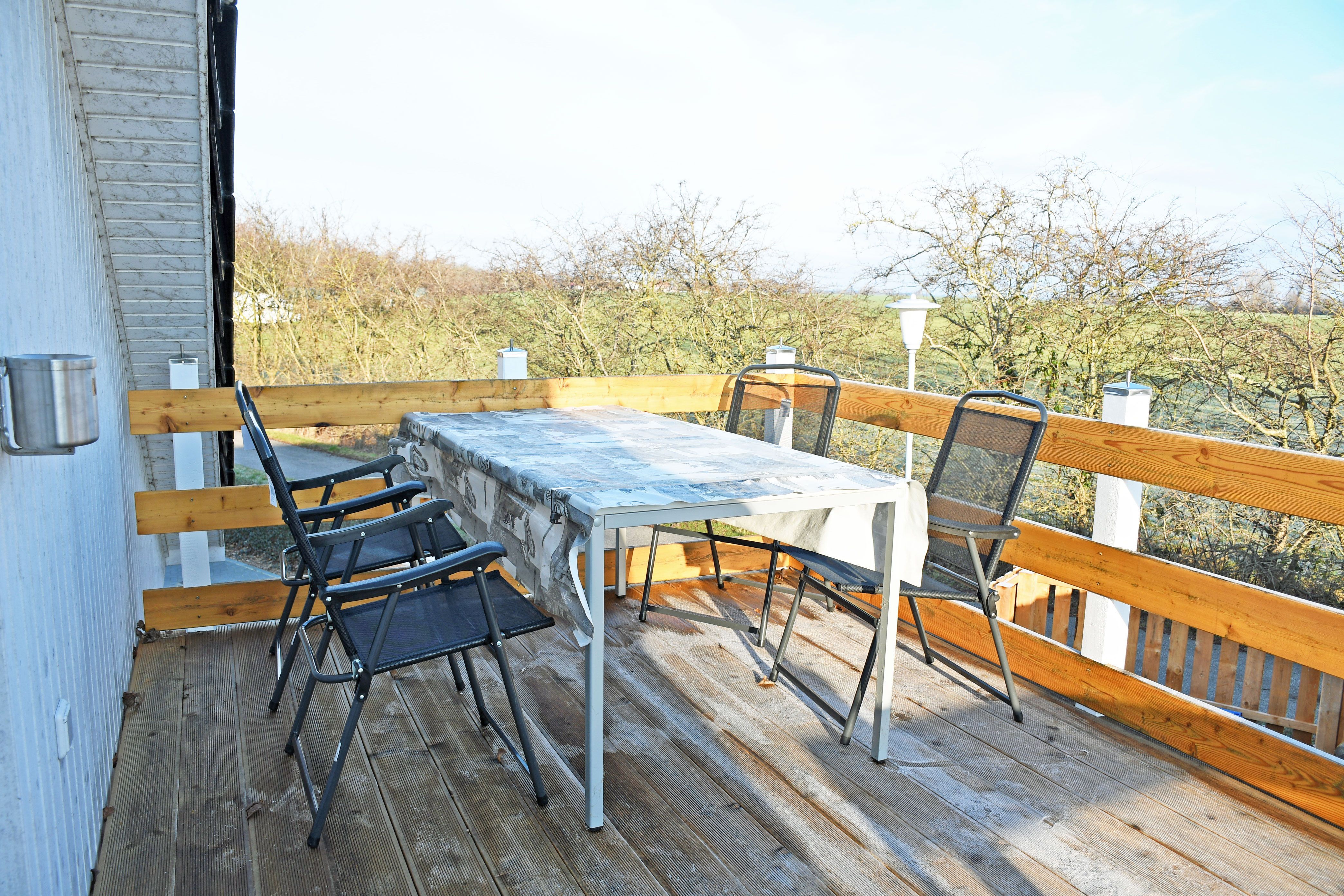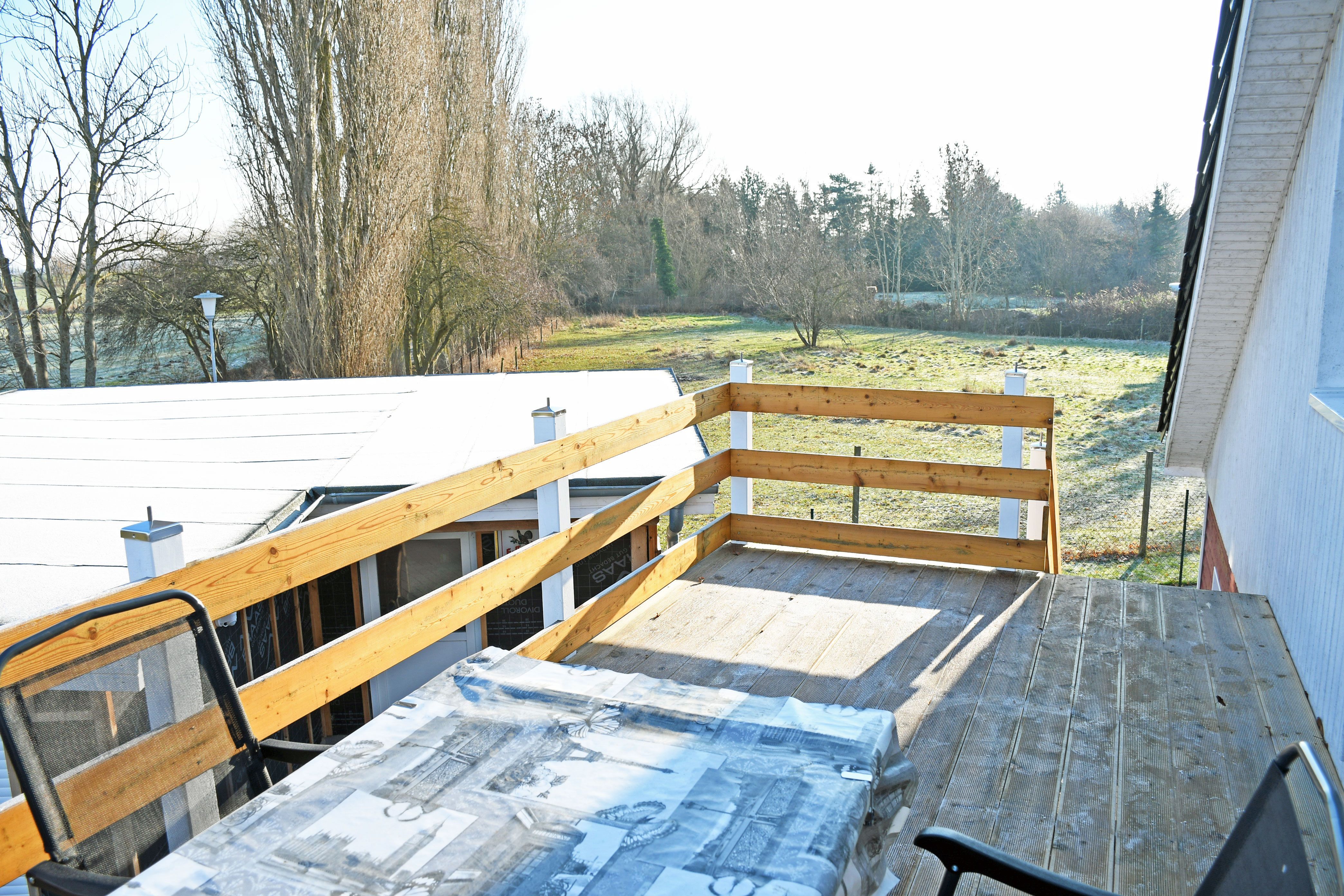 Die Ferienwohnung (60 qm, max. 5 Erwachsene und 1 Kind bis 3 Jahre im Kinderreisebett, Wohnzimmer mit Küchenzeile, 3 Schlafzimmer, Bad/Dusche, Terrasse, WLAN) befindet sich im Obergeschoss eines Wohnhaus. Sie ist über eine Außentreppe erreichbar. Zur Ferienwohnung gehört auch eine schöne Balkonterrasse mit Gartenmöbeln und Grillmöglichkeit.