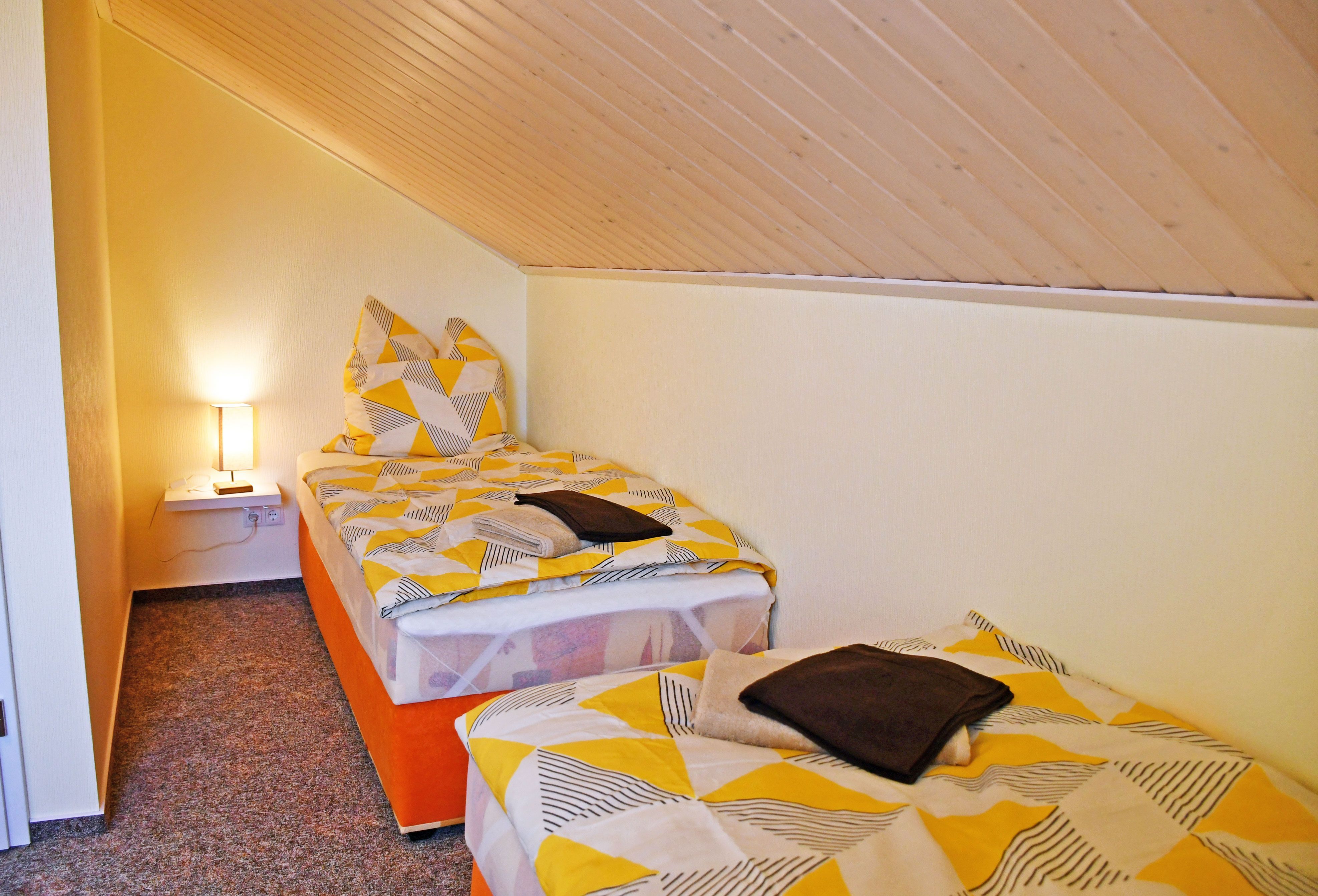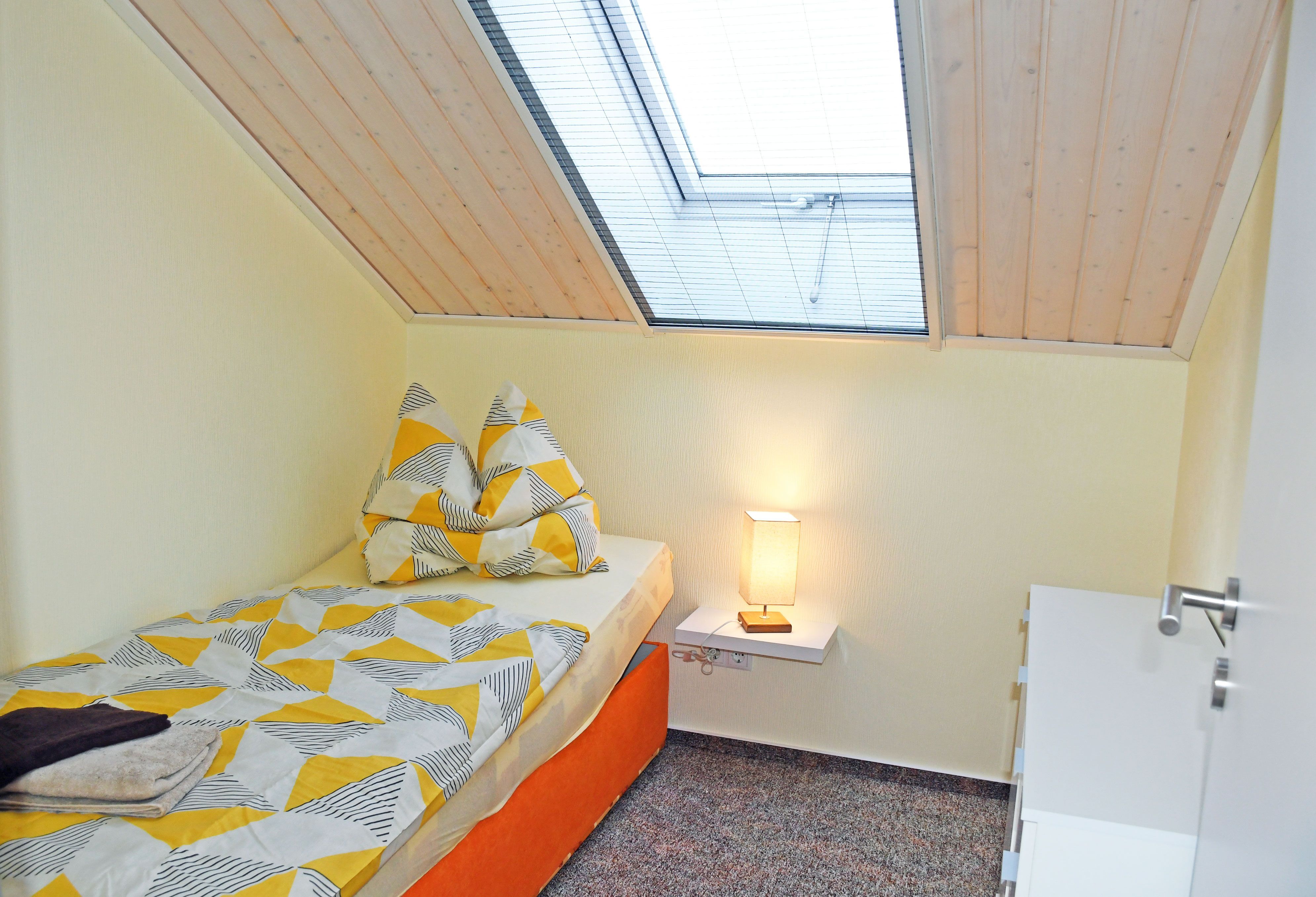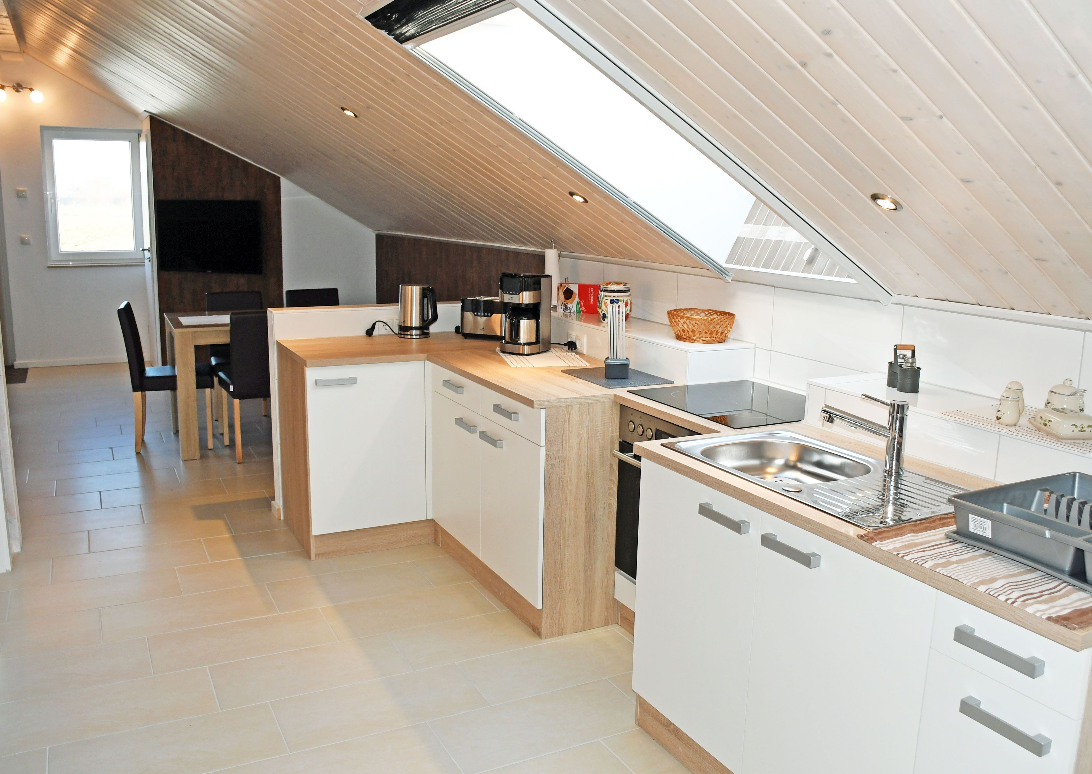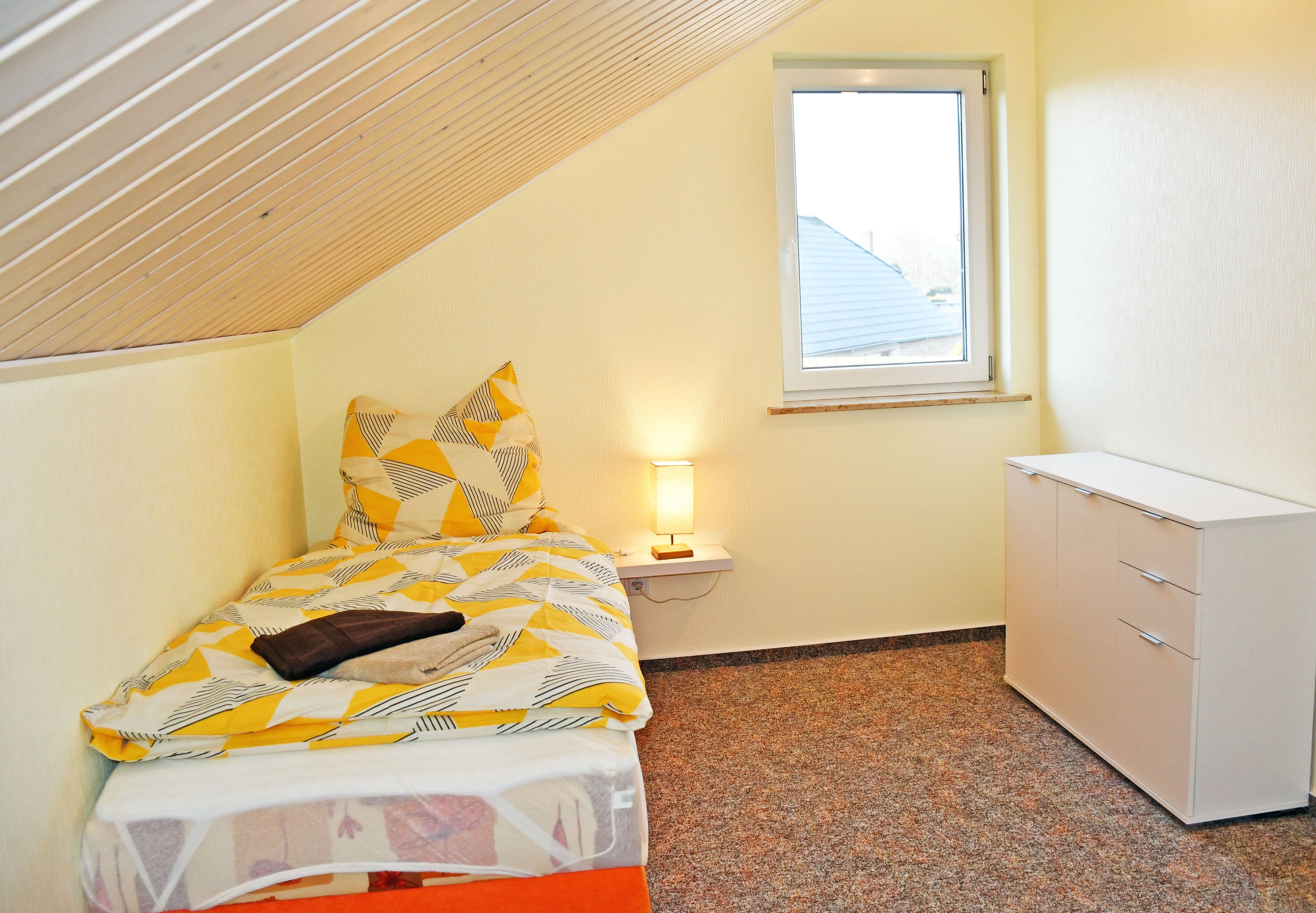 Die Ferienwohnung (60 qm, max. 5 Erwachsene und 1 Kind bis 3 Jahre im Kinderreisebett, Wohnzimmer mit Küchenzeile, 3 Schlafzimmer, Bad/Dusche, Terrasse, WLAN) befindet sich im Obergeschoss eines Wohnhaus. Sie ist über eine Außentreppe erreichbar. Zur Ferienwohnung gehört auch eine schöne Balkonterrasse mit Gartenmöbeln und Grillmöglichkeit.