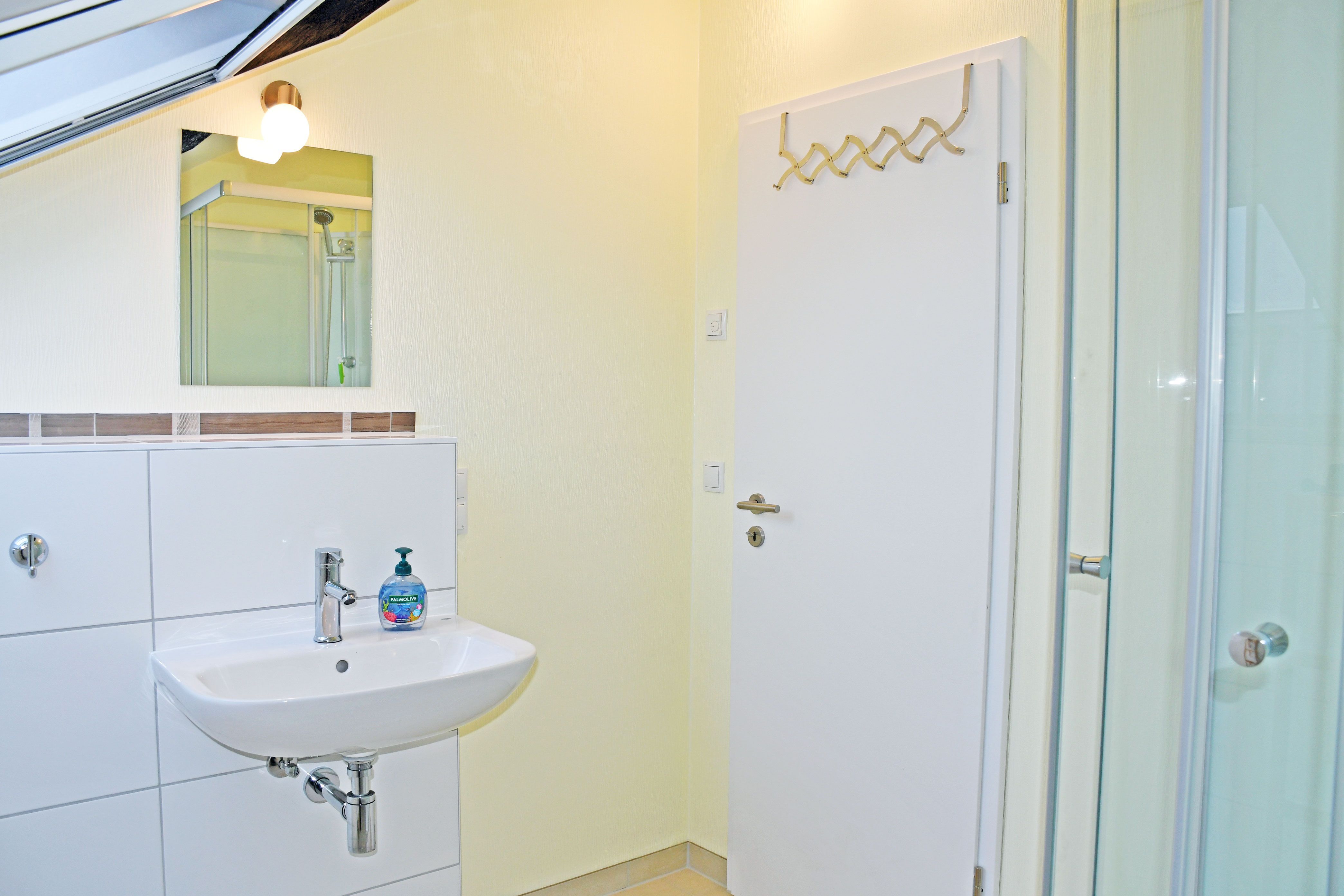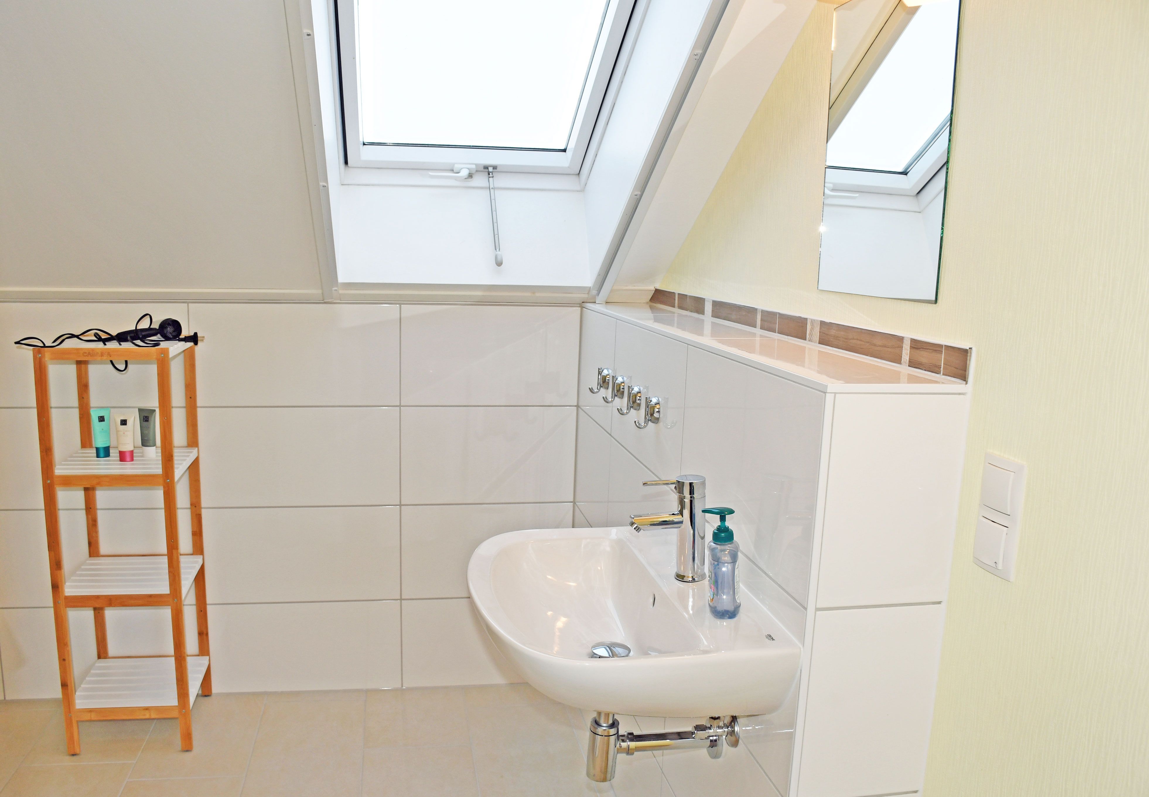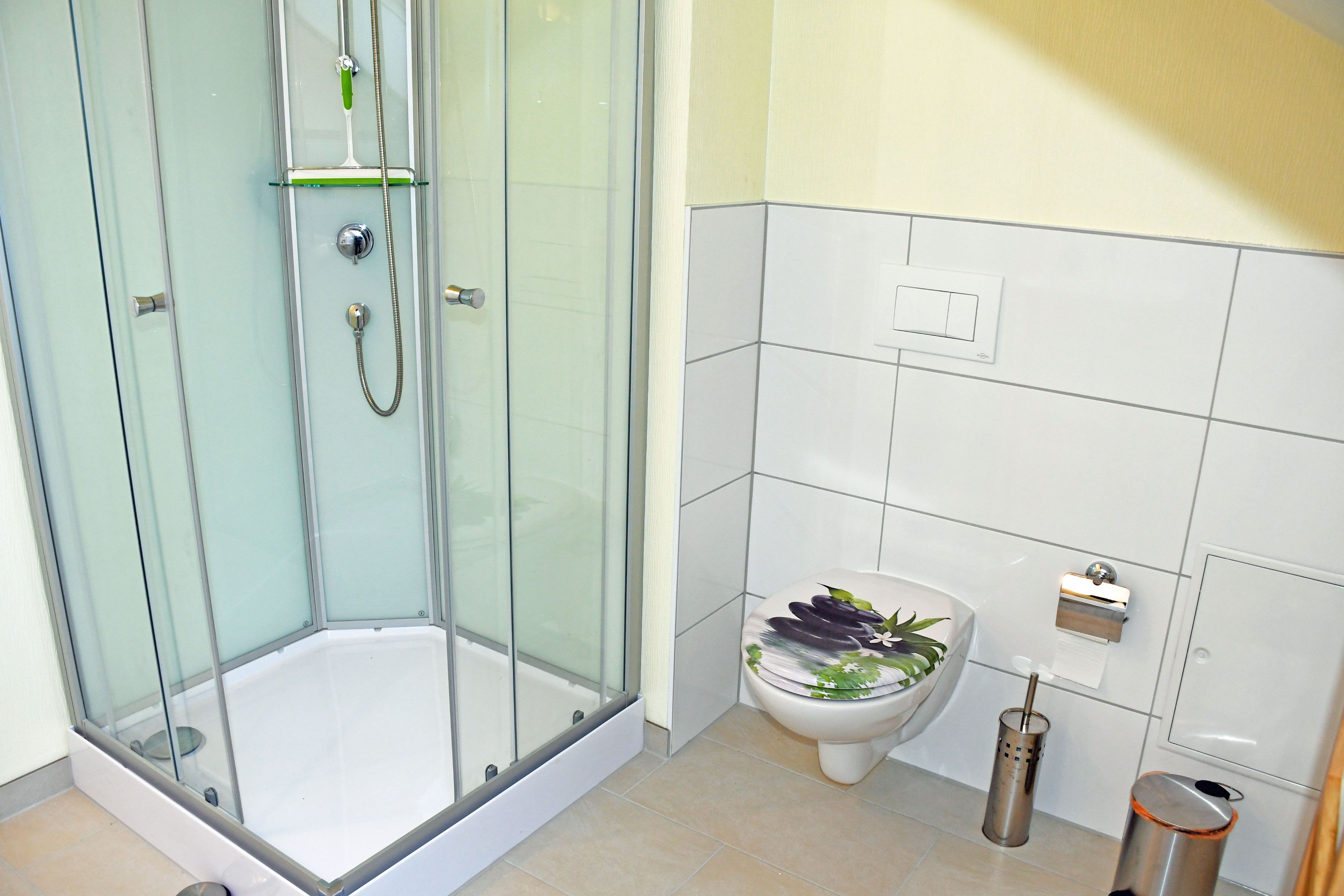 Bettwäsche sowie Handtücher werden bereitgestellt. Das Bad ist mit Dusche, WC und Waschtisch ausgestattet und verfügt über Tageslicht. Zur Ferienwohnung gehört auch eine große Balkonterrasse mit Gartenmöbeln und eine Grillmöglichkeit.