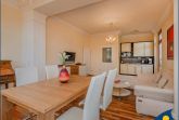 Die Wohnung verfügt über einen großzügigen Wohn-/Essbereich mit bodentiefen Fenstern. Die Aufbettung der 3. Person findet auf der Schlafcouch Platz.