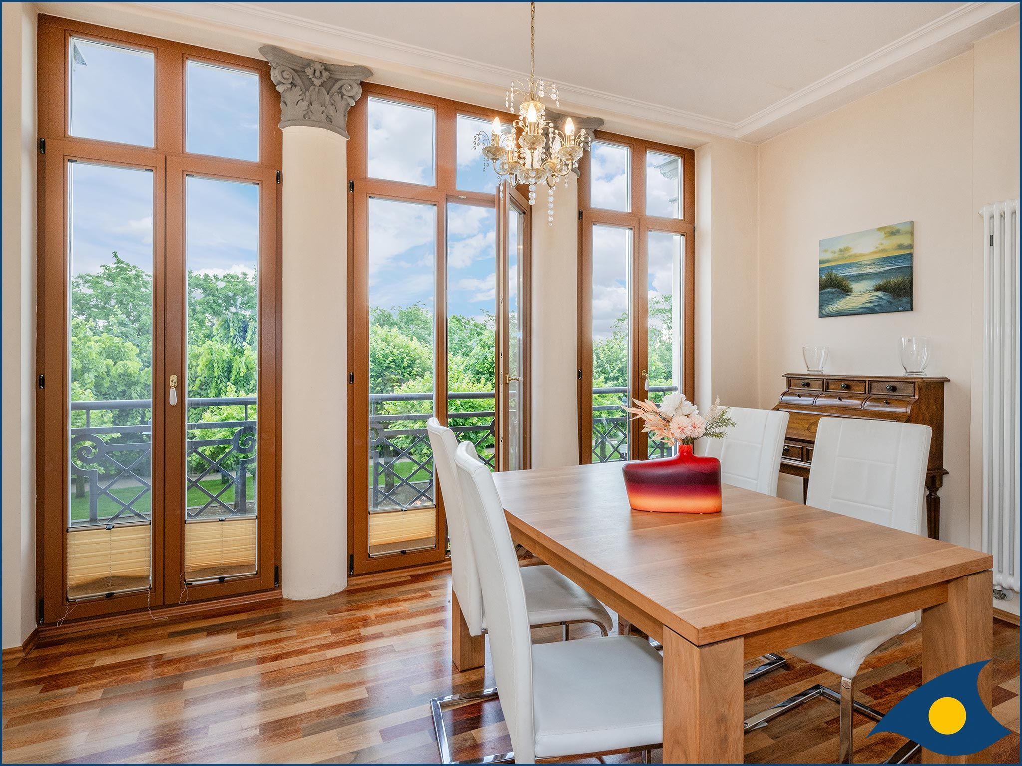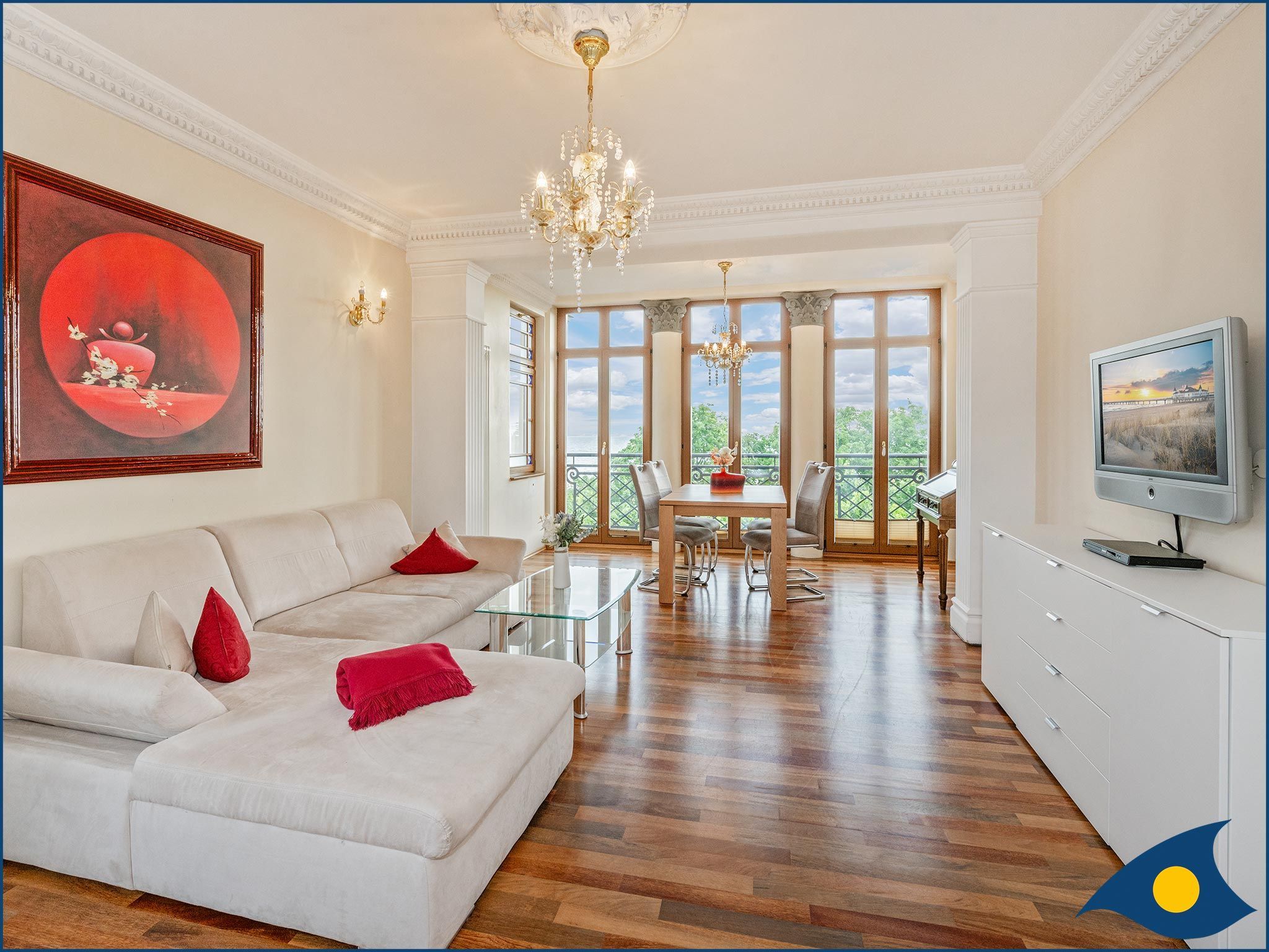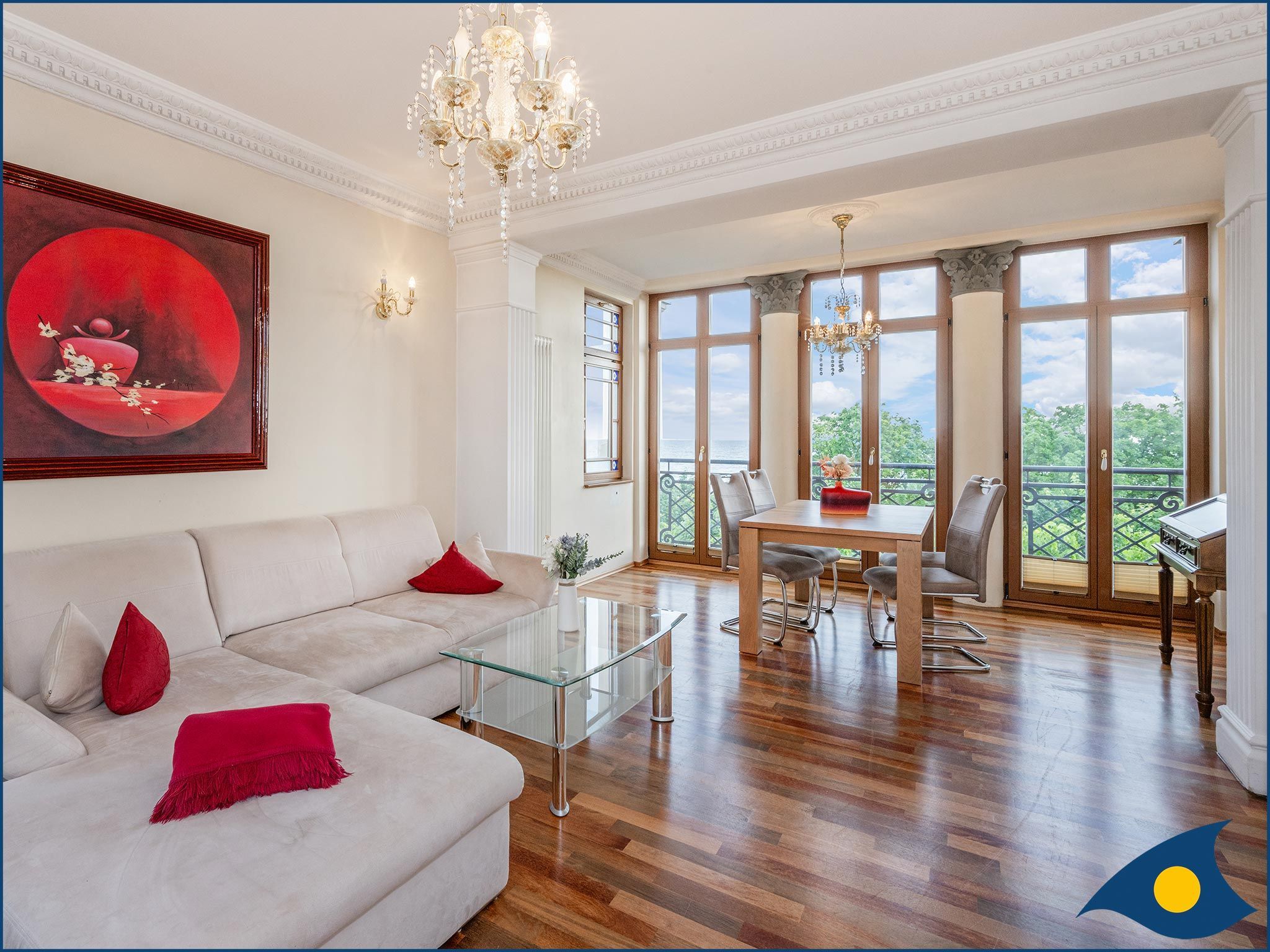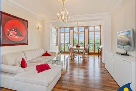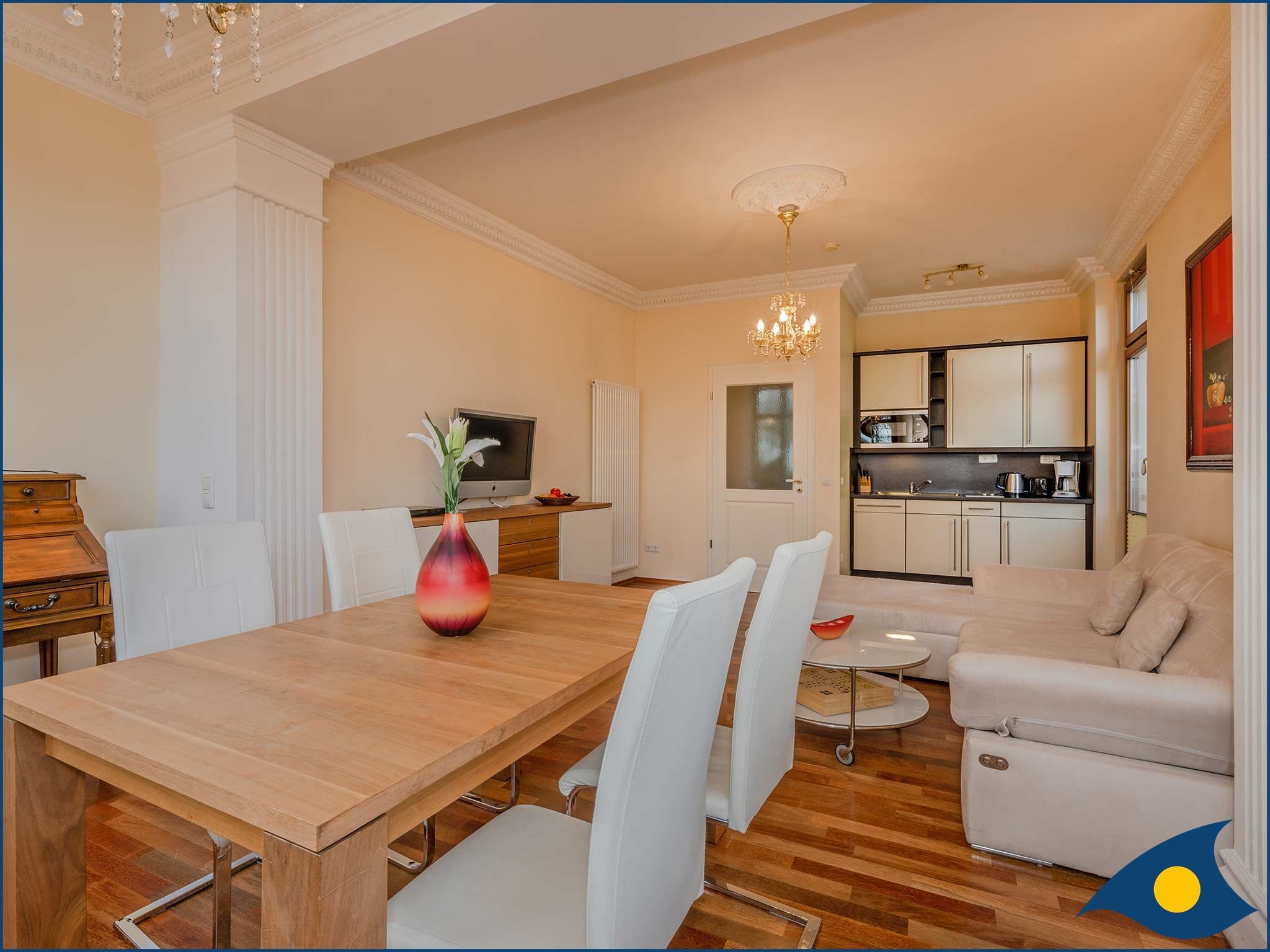 Diese großzügige Ferienwohnung im 2. Obergeschoss der Villa bietet Ihnen einen wundervollen Blick auf die Ostsee.