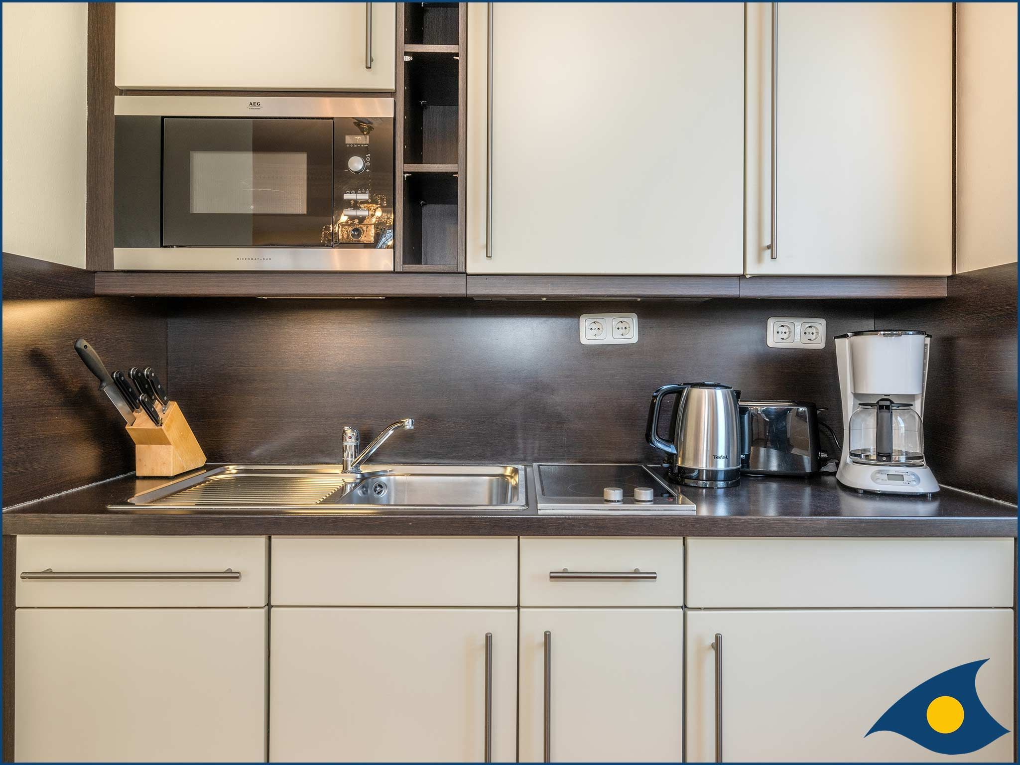 • offene Küche mit Spülmaschine und Mikrowelle
