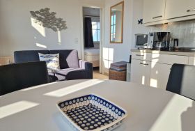 Die geschmackvolle Einrichtung und Ausstattung umfasst ein TV-Flachbildgerät, eine Kaffeemaschine (Filter), eine Mikrowelle, einen Geschirrspüler sowie Bettwäsche, die bereits im Preis inkludiert ist. Auf dem Balkon kann man die frische Luft genießen. Die offene Wohnküche lädt zum gemeinsamen Kochen ein. Für die Unterbringung von Fahrrädern steht ein Fahrradkeller zur Verfügung. Ein kostenloser WLAN Anschluss sowie ein TV mit Sky-Sendern sorgen für Unterhaltung. Auf Wunsch kann auch ein Brötchenservice in Anspruch genommen werden.