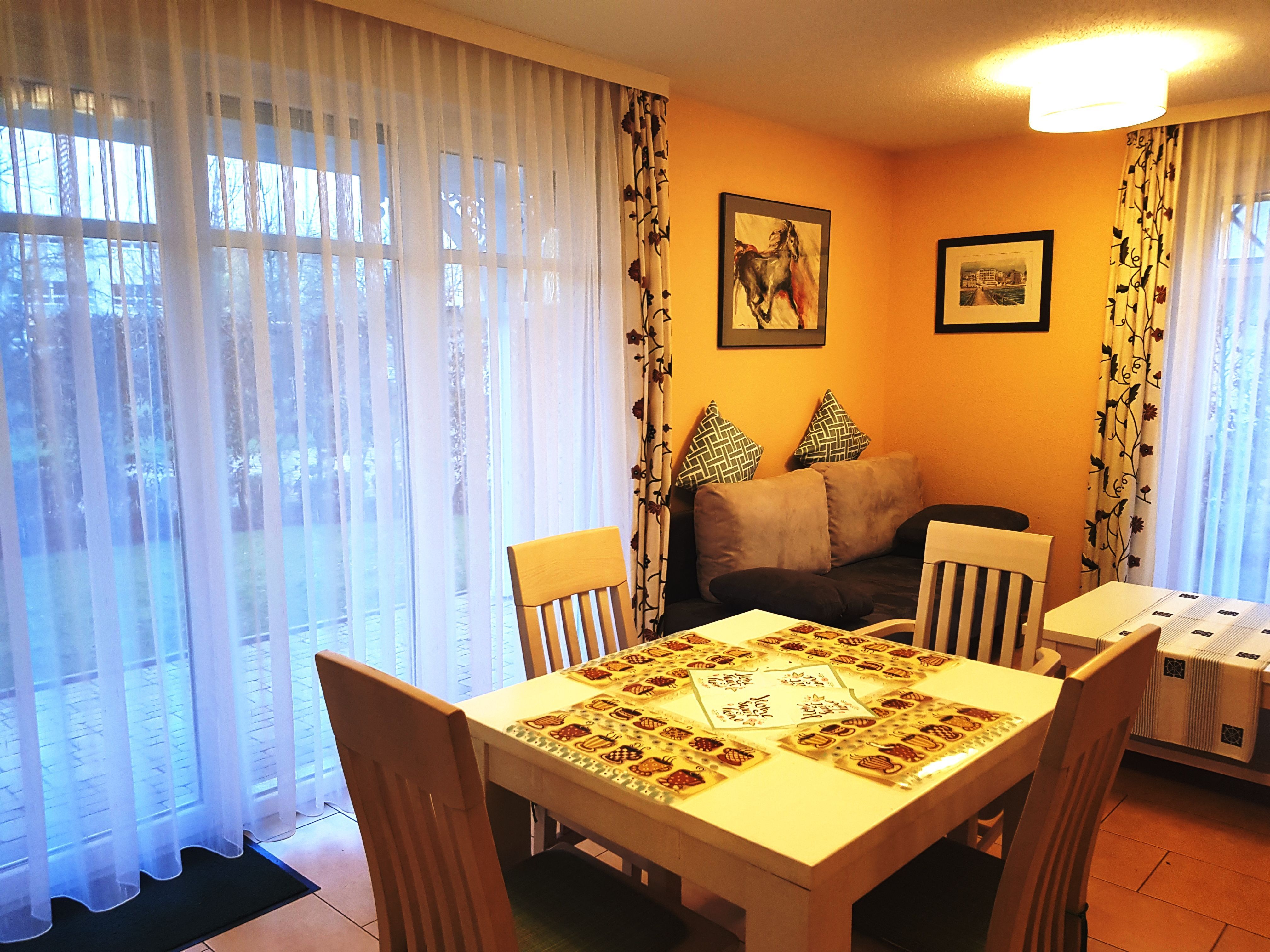 Diese schöne 2 Raumwohnung mit Terrasse befindet sich in einem Haus mit mehreren Ferienwohnungen. Direkt am Haus befindet sich Ihr Parkplatz. Für Ihre Fahrräder ist ein abschliesbarer Raum vorhanden.