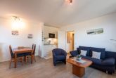 Die modern eingerichtete Ferienwohnung mit einer Größe von ca. 35 m² Wohnfläche ist für bis zu 2 Personen ausgestattet. 1 Wohn-Schlafzimmer mit Schrankbett (2 Einzelne Matratzen), gemütliches Sofa, Küchenzeile mit Cerankochfeld (2-Felder), Mikrowelle, Geschirrspüler, Kühlschrank mit Gefrierfach, Wasserkocher, Toaster, Kaffeemaschine, Essplatz, direktem Zugang zur großen Dachterrasse mit Strandkorb, Bad mit WC und Dusche. Nichtraucherwohnung, PKW-Stellplatz direkt am Haus.