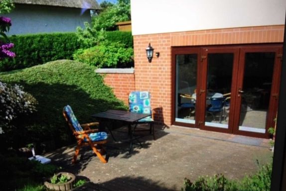 Wir begrüßen Sie herzlich in unserer freundlichen und großzügigen Ferienwohnung. Die Wohnung befindet sich im ebenerdigen Souterrain unseres Reetdachhauses in sehr ruhiger, strandnahen und zentralen Lage. Über eine kleine Treppe gelangen Sie auf die großzügige Terrasse, die von morgens bis zum späten Nachmittag Sonne bietet. Gartenmöbel laden zum Verweilen ein. Über die Terrasse gelangen Sie in den Wohnbereich. Im Wohnzimmer befindet sich ein Essbereich sowie eine Sitzecke mit Schlafcouch und Sessel. Vom Wohnzimmer aus erreichen Sie das Schlafzimmer mit Doppelbett sowie die Küche. Die Küche ist ausgestattet it 4 Kochplatten, Mikrowelle, Kühlschrank mit Gefrierfach, Kaffeemaschine, Wasserkocher und Toaster. Über einen Flur erreichen Sie das separate WC sowie das Duschbad. Handtücher und Bettwäsche zur Erstausstattung sind inklusive. Auch ein Kinderbett kann kostenfrei zur Verfügung gestellt werden. Ebenfalls steht unseren Gästen kostenfreies WLAN zur Verfügung. Wir wünschen Ihnen einen angenehmen und ruhigen Aufenthalt in unserem schönen Ostseebad Ahrenshoop.