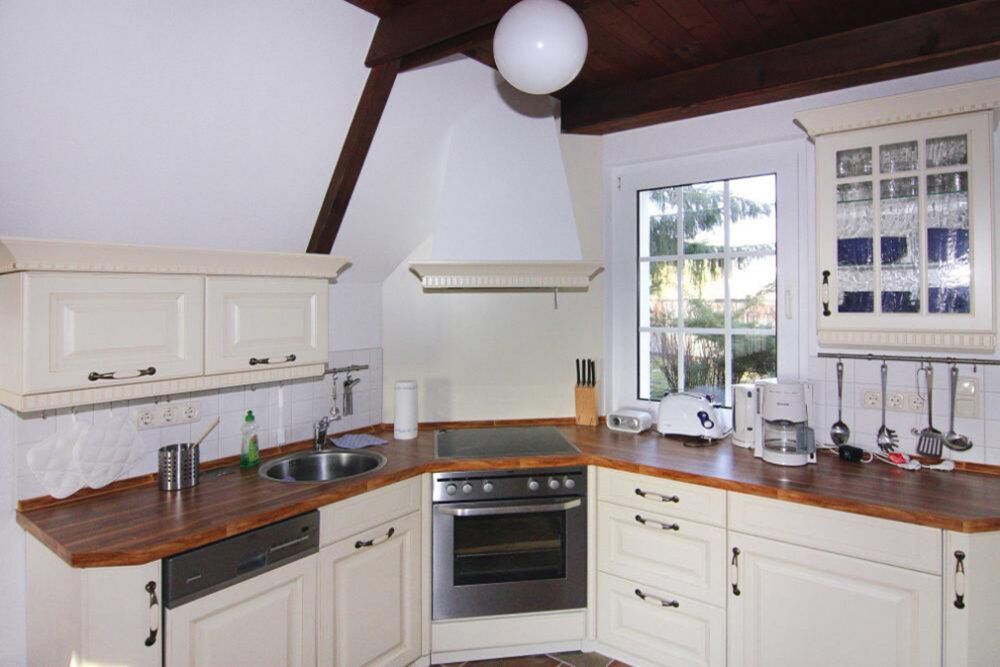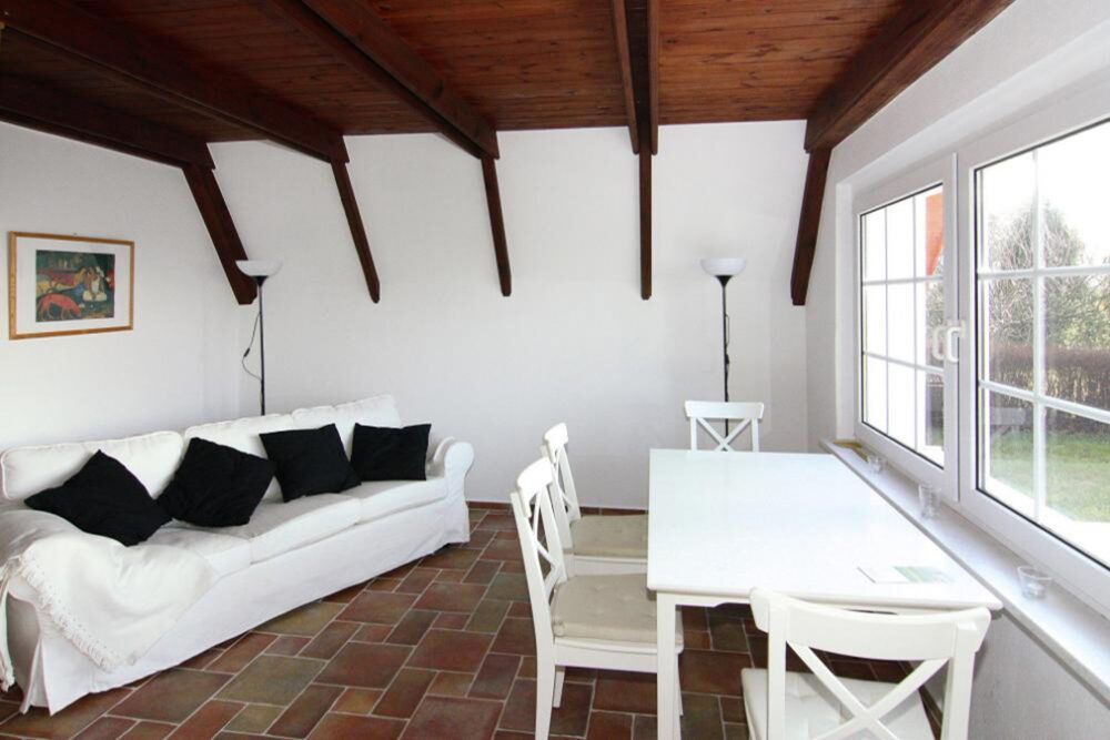 Tagsüber lädt der Garten mit altem Baumbestand zum Relaxen und abends zum Grillen ein. Der kleine Naturbadestrand liegt direkt unterhalb der Steilküste. Dank der gemütlichen Fußbodenheizung kann man die Reize der schönen Insel Usedom auch in der Übergangszeit sowie im Winter genießen. Das Haus Chrissi ist ideal für zwei Personen. Es steht aber auch eine Schlafmöglichkeit für eine dritte Person zur Verfügung.