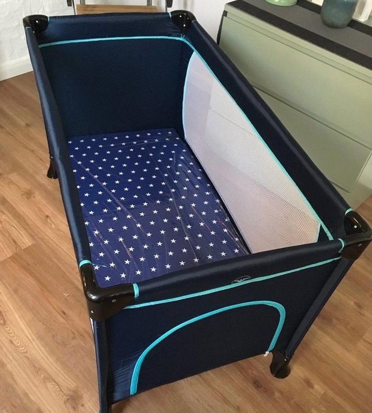- Wohnzimmer mit Sofa und Esstisch für vier Personen (+ Kleinkind, Kinderstuhl und -bett vorhanden), TV