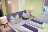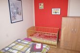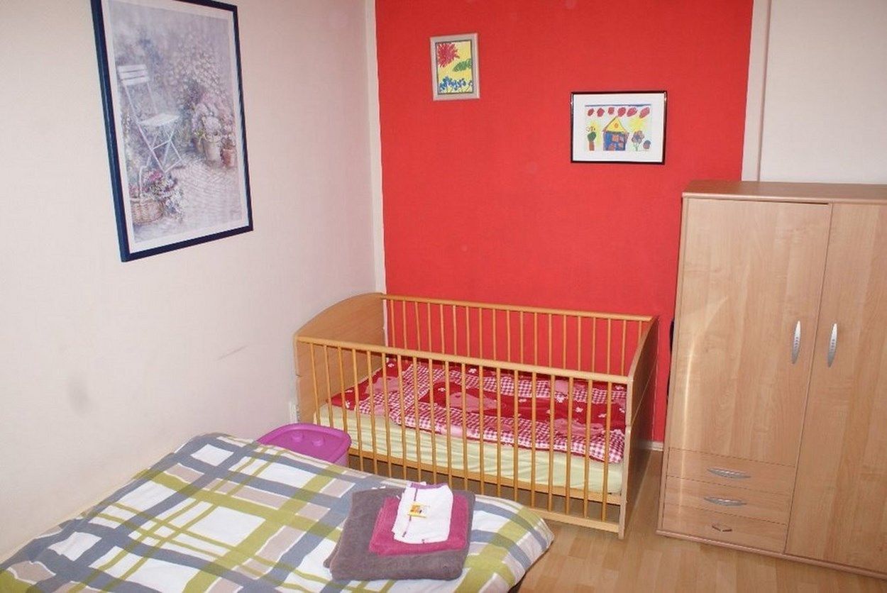 1. Schlafraum mit Kleiderschrank, Doppelbett (1,60 x 2,00 m), durch diesen Schlafraum gelangt man in den 2. kleineren Schlafraum mit Doppelbettcouch 1,40 x 2m, 1 Holz-Gitter-Kinderbett und Wickeltisch.
