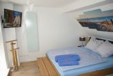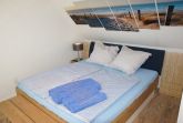 Über die Massivholztreppe gelangen Sie auf das „Sonnendeck“ mit Schlafzimmer und der großzügigen Dachterrasse mit 20 m². Im Schlafzimmer sorgen das bequeme Eichenbett 180 x200 cm mit Bettbank für traumhaften Schlaf. Die Bettwäsche, sowie Sommer und Winterbetten sind inklusive. Der geräumige Kleiderschrank, die Massivholzkommode, sowie 2 stumme Diener sorgen für Stauraum und Ablagemöglichkeiten. Die moderne Infrarotglasheizung sorgt für wohlige Wärme auch in der kalten Jahreszeit. Der Ausblick Richtung Westen in die Natur und auf die Ostseeküste, sowie die absolute Ruhe begeistern zu jeder Jahreszeit.