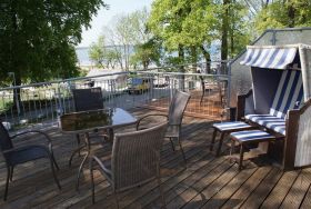 Auf der westlich ausgerichteten Dachterrasse können Sie im Strandkorb den traumhaften Ausblick auf die Ostsee genießen.