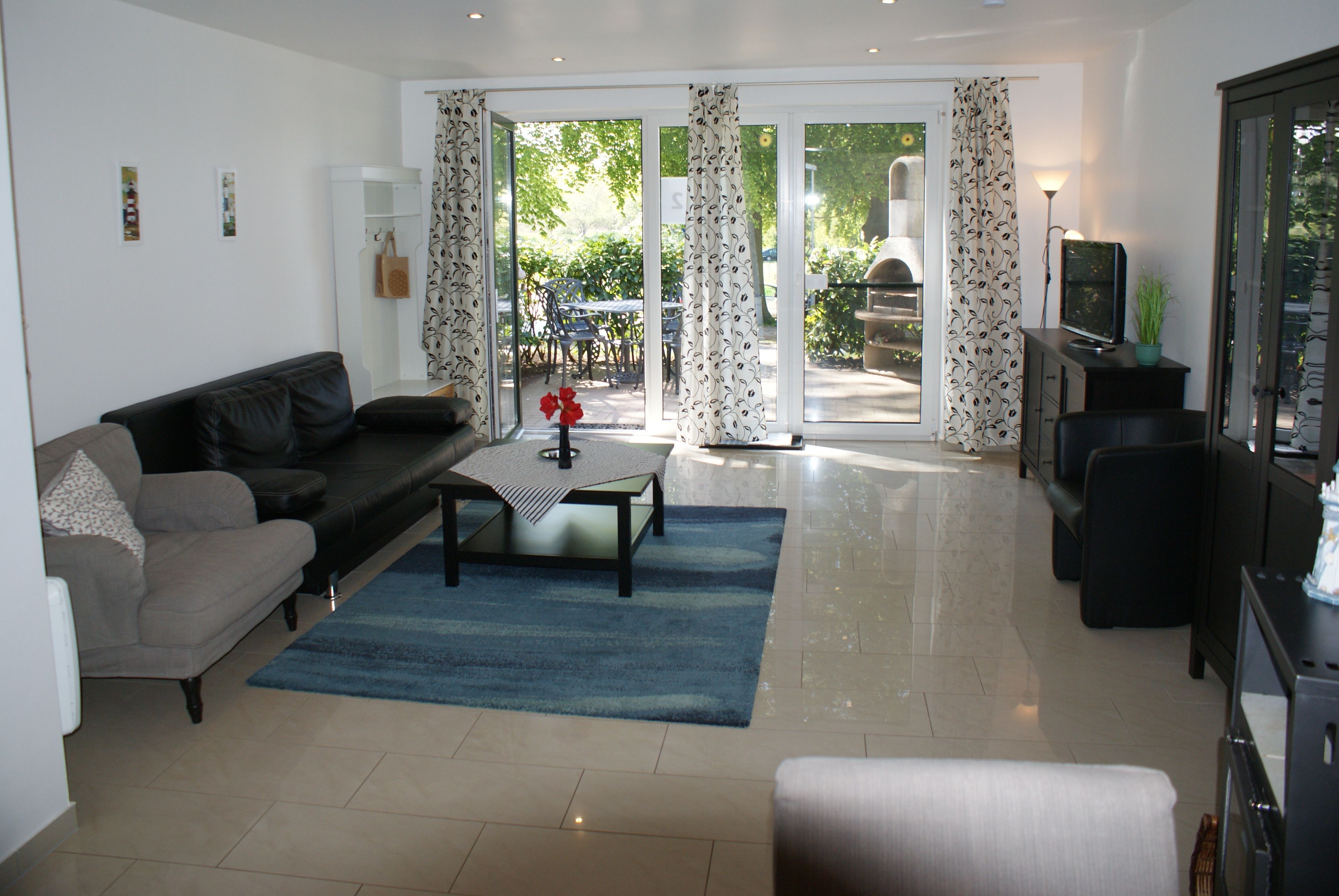 - Wohnzimmer mit Couch (mit Schlaffunktion für 2 Personen), TV, Radio, Essbereich für 4 Personen