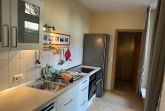 Zur Wohnung gehören ein kleiner Flur, ein Wohnzimmer mit integrierter Küche, ein Schlafraum mit einem Doppelbett, ein Bad mit Dusche und WC sowie ein Abstellraum.