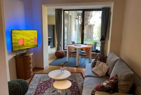 Die Wohnung ist ca. 50 m² groß und modern ausgestattet. Unter anderem gibt es einen WLAN Anschluss, Flachbildfernseher, Geschirrspüler, Kaffeemaschine und Mikrowelle sowie eine nach Süden ausgerichtete Terrasse mit Gartenmöbel und Auflagen.