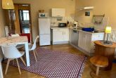 Sie besteht aus einem Schlafzimmer mit einem Doppelbett und einer Liege, einem Wohnbereich mit Fernseher und Doppelbettcouch, einer offenen Küche mit Geschirrspüler, Mikrowelle, E-Herd und Kaffeemaschine, einem Abstellraum und einem Bad mit Dusche.