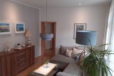 - Wohnzimmer mit gemütlicher Schlafcouch, TV, Sessel und Musikanlage