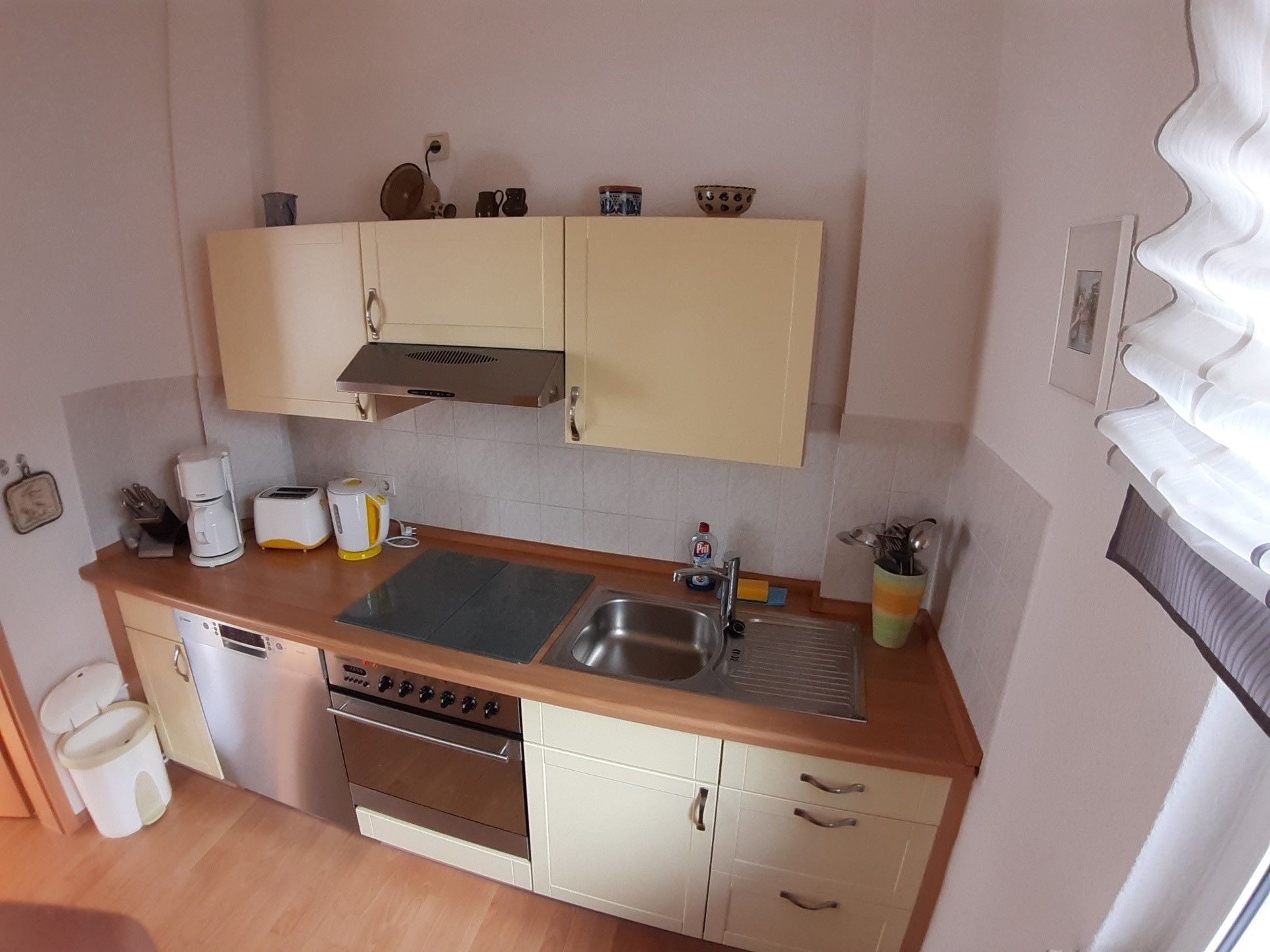 - separate Küche mit Essbereich vollausgestattet (u.a. mit Geschirrspüler, Geschirr, Besteck, 4-Platten-Ceran-Herd mit Backofen, Mikrowelle, Wasserkocher, Kaffeemaschine, Toaster u.v.m.)