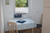 Die Küche ist mit einem Herd/Backofen, Ceranfeld, Geschirrspüler, Kühl-Gefrierkombi, Wasserkocher, Kaffemaschine, Toaster und einer Mikrowelle sowie allen gebräuchlichen Küchenutensilien ausgestattet. Die Möglichkeit in der Küche die Mahlzeiten einzunehmen ist ebenfalls gegeben.