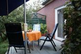 Vom Wohnzimmer aus lädt die Terrasse zum sonnenbaden, frühstücken im Freien, grillen und entspannen ein. Diese ist mit Sonnenschirm, Tisch und Stühlen und den dazugehörigen Auflagen ausgestattet.