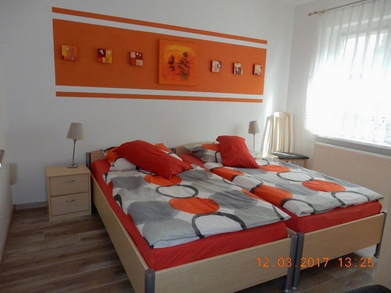 Das Schlafzimmer verfügt, über zwei Betten welche zusammen bzw. auch auseinander gestellt werden können, Nachtschränken und einem großen Kleiderschrank. Hier werden erholsame Schlafstunden garantiert.