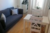 - Wohnzimmer mit Couchen, Flat-TV, Radio