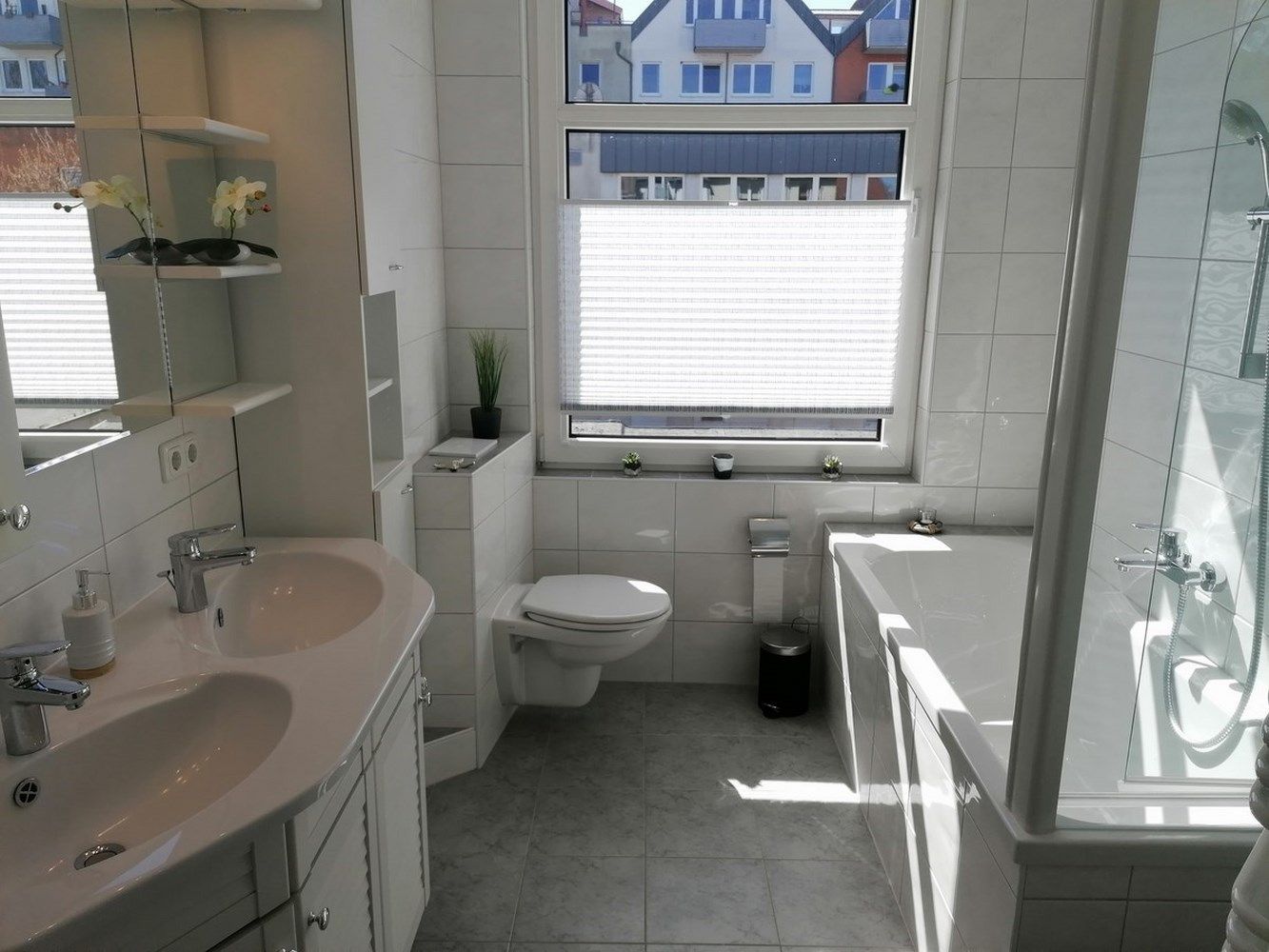 - Vollbad mit Badewanne, WC und Spiegelschrank