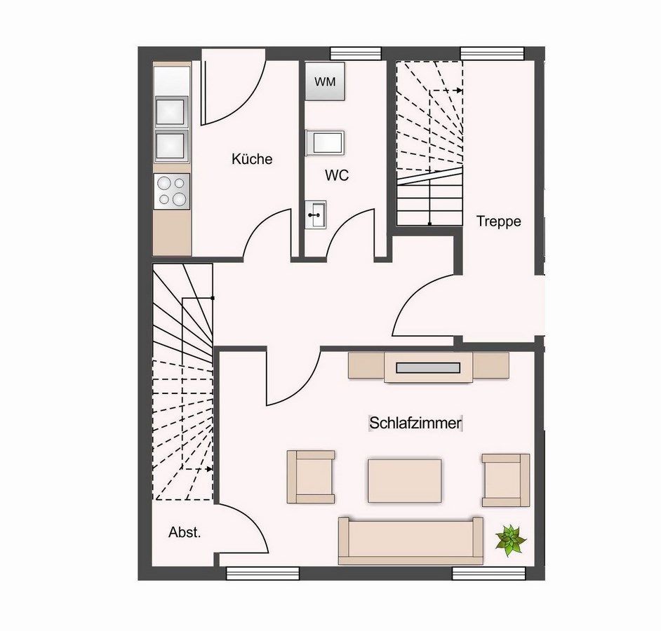 Bitte beachten Sie, dass Sie 2 steile Treppen gehen müssen, bevor Sie in die Wohnung gelangen.