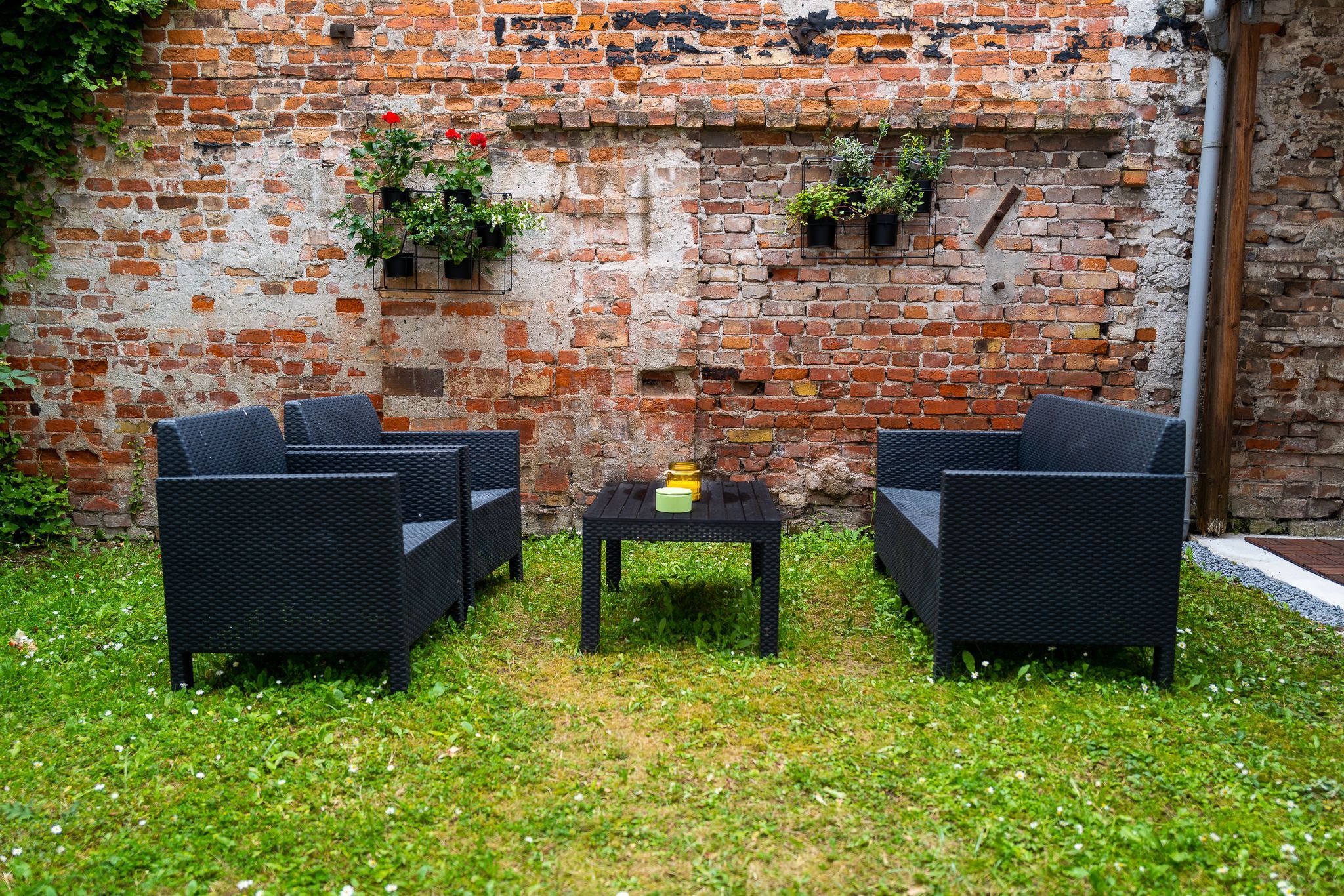 Unseren Gästen steht eine Terrasse im Innenhof im Innenhof zur gemeinsamen Verwendung zur Verfügung (siehe Fotos).